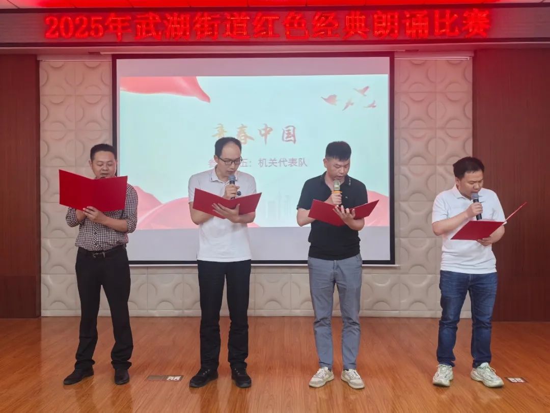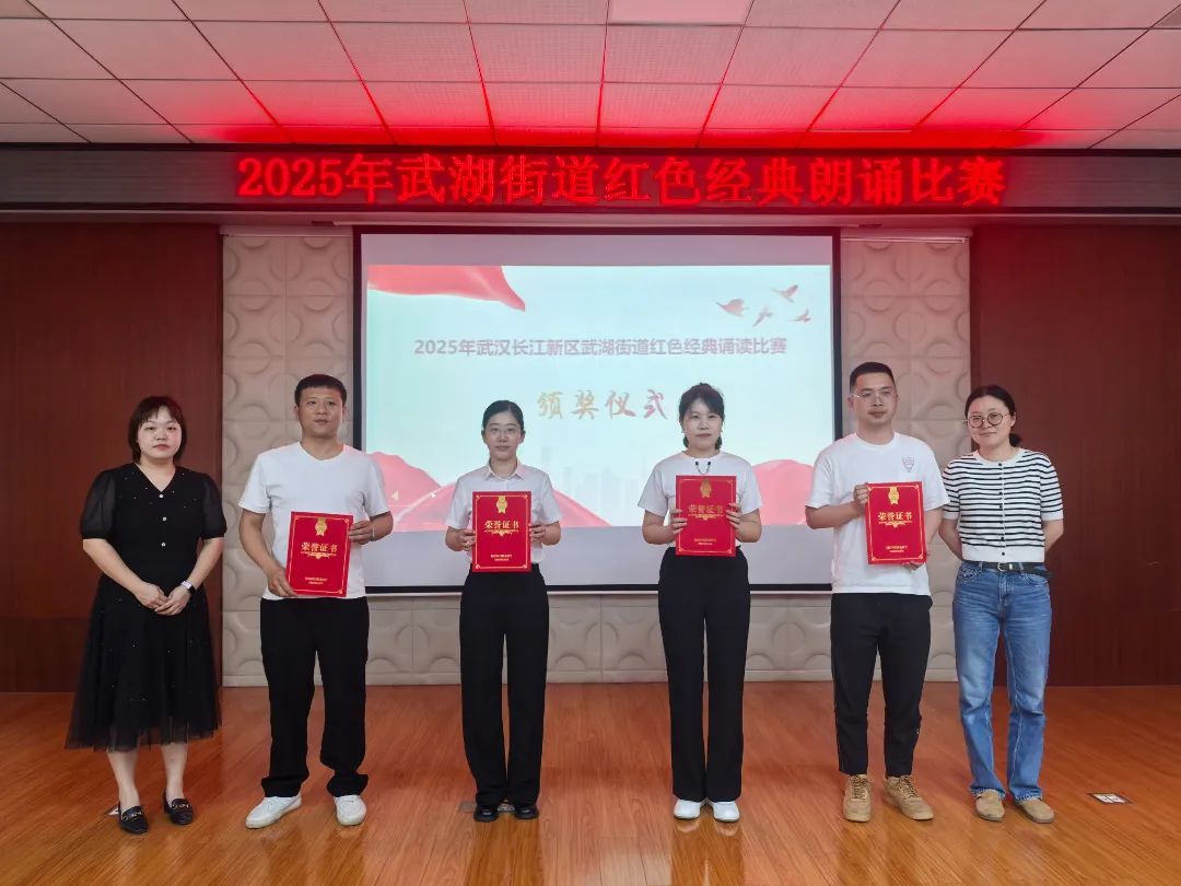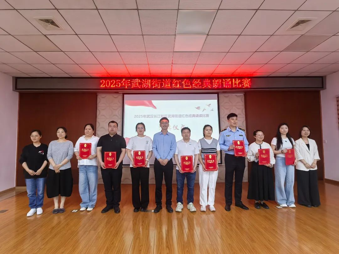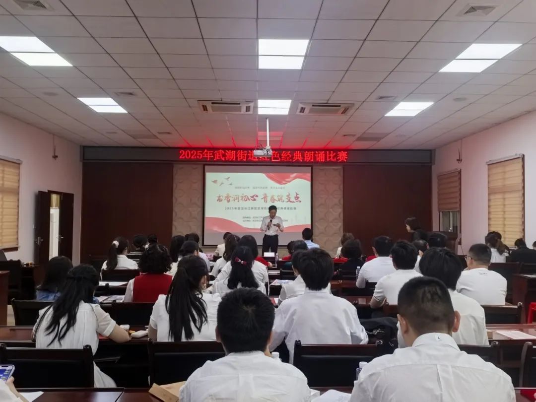 为传承红色基因,弘扬五四精神,凝聚青春力量,聚力支点建设,4月24日,长江新区武湖街道举办“书香润初心,青春筑支点”红色经典诵读比赛。本次活动由武湖街道新时代文明实践所主办,武湖街道党建办、团工委和文化站承办,武湖教育总支、武湖老年大学、武汉文理学院协办。15支参赛队伍与3组表演嘉宾以声为媒,串联百年党史与荆楚情怀,用18个节目演绎了一场跨越时空的红色精神盛宴。从青葱少年到银发长者,从热血誓言到诗意山河,每一个声音都传递着初心与担当!