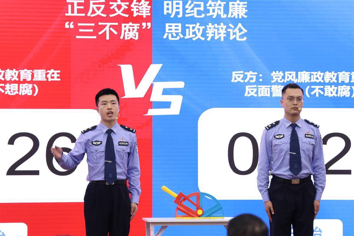 “真理越辩越明。”随后,法制支队将青年辩论赛搬上讲台,正反双方以“党风廉政教育是以正面教育为主还是以反面警示为主”为题,展开一番唇枪舌剑,揭示出“正面示范铸魂,反面警示立威,正面示范与反面警示如同车之双轮,二者缺一不可”的核心要义。