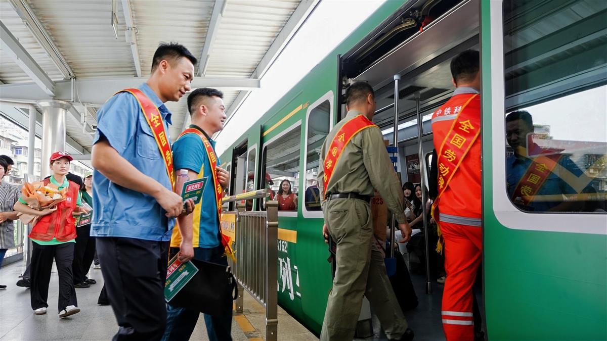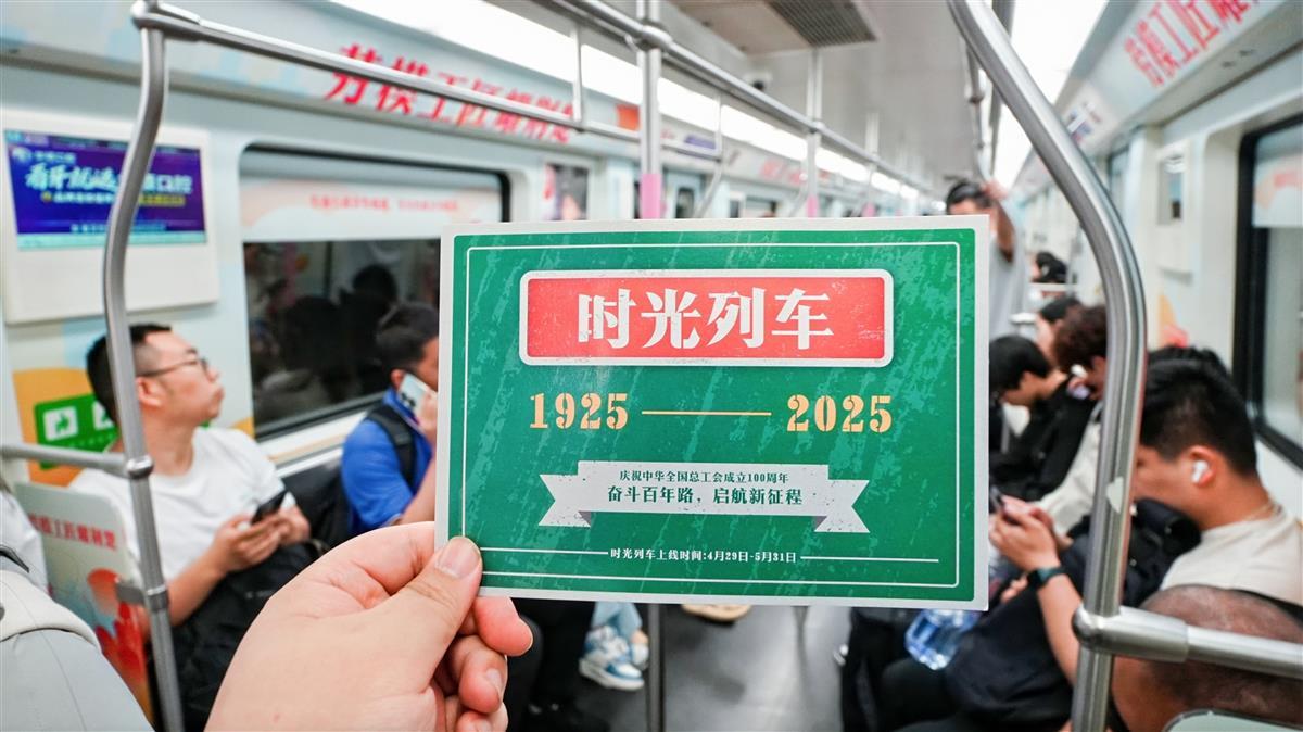 在武汉轻轨1号线上,一辆穿越时空的“绿皮火车”飞驰而过,车身上斑驳的“1925-2025”字样,在阳光下泛着金属光泽;穿长江而过的武汉地铁2号线,“劳模工匠耀荆楚”的光芒熠熠生辉。两列主题列车通过“一旧一新”创意设计,将汉口中华全国总工会旧址的厚重历史与新时代劳动模范的鲜活故事“搬进”地铁,让广大乘客在感受城市脉动的同时,深入了解中国工会的光辉历程和劳动模范的奋斗故事。