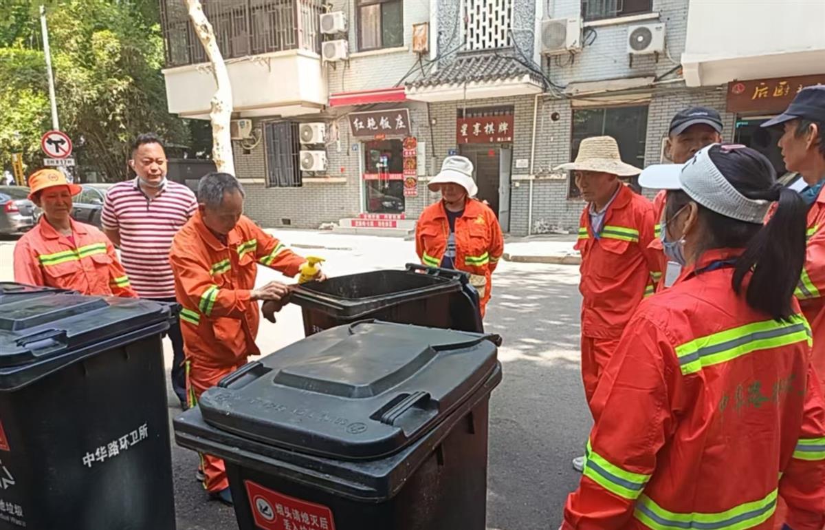 “垃圾桶盖沿死角要用钢丝球‘画圈擦’,油渍顽固处先喷火碱水静置3分钟。”4月29日,武昌区中华路街道环卫所联合天呈祥环卫工程科技有限公司、社区志愿者开展迎“五一”环境卫生攻坚冲刺活动,在中华路街道红色旅游点位廉政公园,环卫标兵张玉松、袁申芝师傅现场讲授洗桶和大扫、保洁的工作体会,手把手指导保洁员清洗作业。