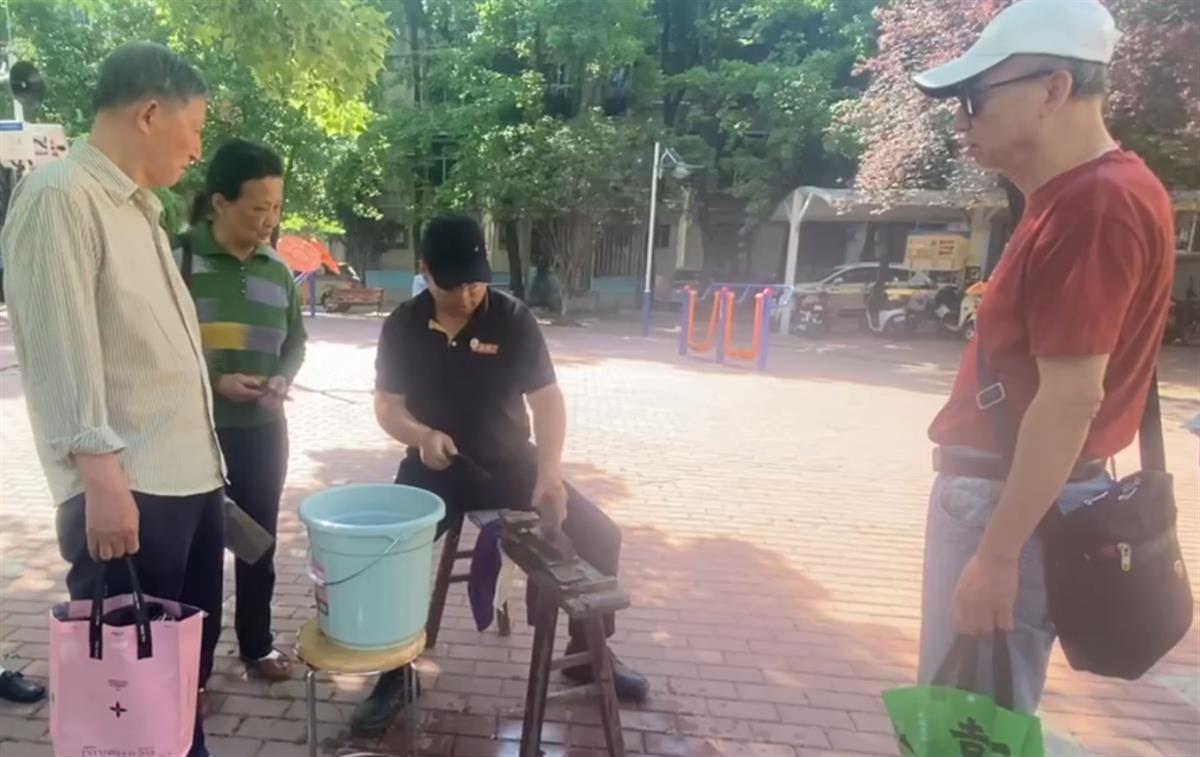 碧园社区“劳动创造美好,共建和谐社区”活动现场精彩纷呈。居民群众在享受修鞋、磨刀、套圈游戏等便民服务的同时,积极参与非遗漆扇制作。从调漆、上色到绘图,每一个步骤都充满了创意与乐趣,大家在制作漆扇中感受到传统手工艺的魅力,收获满满的成就感。