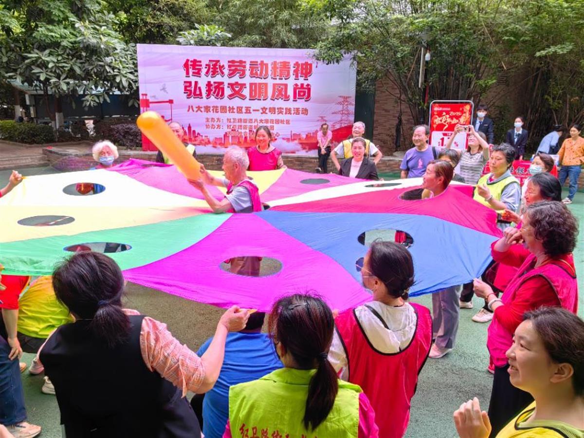 劳动铸就梦想,运动点燃激情。八大家花园社区举办了一场热闹非凡的“传承劳动精神,弘扬文明风尚”趣味运动会。来自各行各业的辖区党员、居民骨干参加了“旱地龙舟”“打地鼠”“四平八稳”“垃圾分类”等趣味项目。三弓路社区“欢乐五一,健康同行”活动现场激情无限。居民们积极参与“穿衣接龙”“赶鸡进笼”“一根筷子挑大梁”等趣味游戏,用拼搏和汗水诠释劳动风采。现场同步开设便民服务专区,涵盖视力检测、中医问诊、爱心义剪等,弘扬新时代劳动精神的同时,为居民们送上别具意义的“劳动节礼包”。