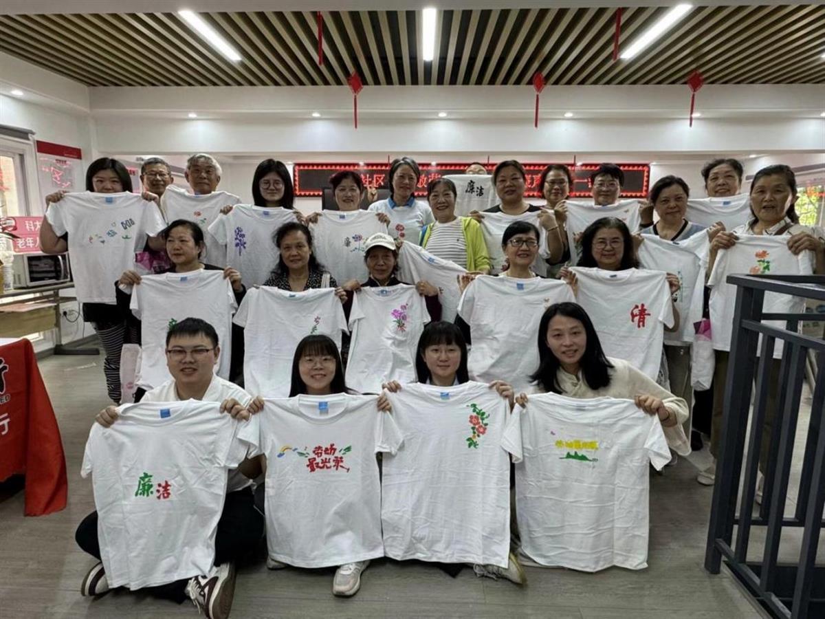 和平社区开展“传承红色基因,弘扬爱国精神”教育实践活动。科大社区将“五一”劳动节与党风廉政建设深度融合,开展“致敬劳动者,创意绘廉声”主题活动。居民们发挥想象力,在空白T恤衫上自由创作,写下“劳动创造幸福”字样、画出“莲花绽放”“挺拔翠竹”等图案,让劳动最光荣、廉洁过“五一”理念深入人心。小区广场上,普仁医院医护人员们为居民提供全方位的健康检查和咨询服务,物业工作人员提供理发、刷鞋、磨刀等暖心服务,他们用实际行动诠释了劳动的价值,辛勤付出赢得居民的点赞。