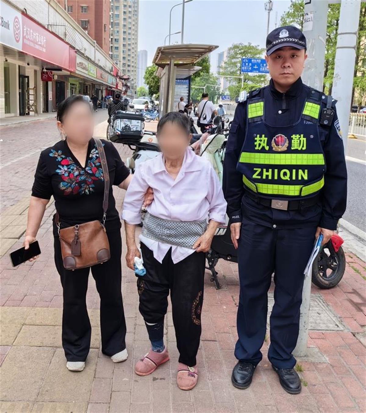 “婆婆坐在店门口,好像迷路了!”4月23日上午10时许,汉阳警方接到报警,三青路某小区零食店门口有位疑似走失的老人。民警袁磊带领辅警徐文诚迅速赶到现场。由于婆婆无法说清住址,民警通过派出所找到其亲属的联系方式,并将她送回了家。此时,离报警刚过去半小时。