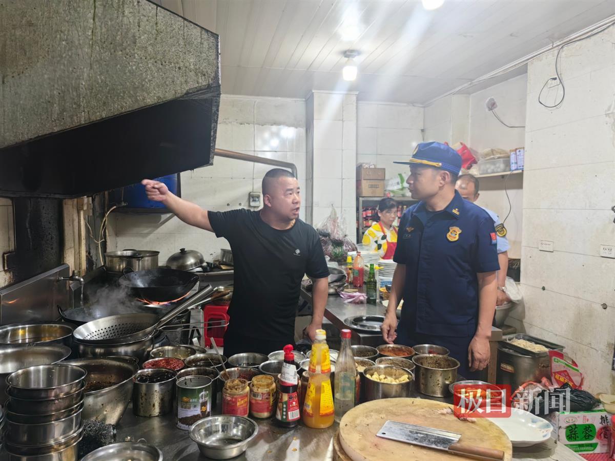 “这个油烟管道一定要及时清洁,否则是很大的消防安全隐患。”在新洲区,巡防组深入辖区内小饭店、小餐馆等人员密集场所开展防消联勤和消防宣传警示教育行动。在一家餐馆后厨,巡防组发现油烟管道上沾满了油垢、抽油烟机未及时清理等问题,责令商户采取措施进行整改,同时开展消防安全教育。