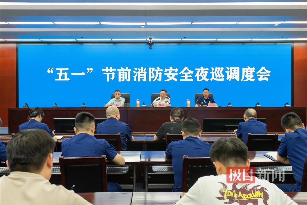 夜巡行动前,各部门相关负责人在武汉市消防救援支队召开“五一”节前消防安全夜巡调度会,通过视频会议系统对全市集中夜巡行动进行调度和部署,确保此次夜巡行动的协调性和高效性。