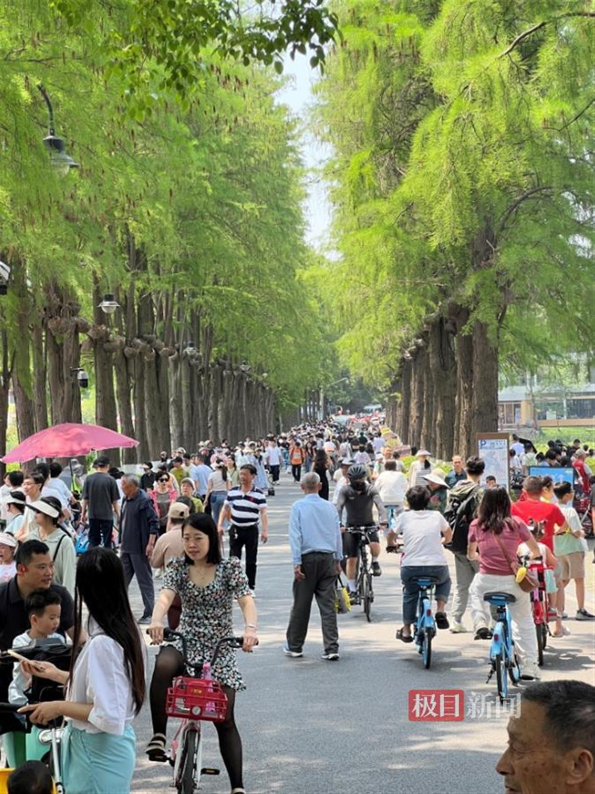 5月1日是五一假期第一天,游客从四面八方来到武汉。中午时分,尽管天气炎热,但依然抵挡不住游客到东湖绿道游玩的热情。