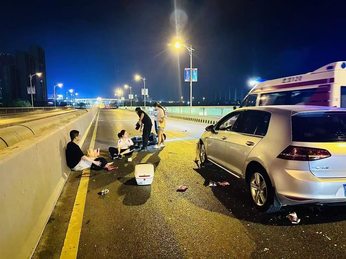 4月29日晚8时50分,武汉市公安局长江新区公安分局谌家矶街派出所和分局巡特警大队车组行驶经过黄陂二桥,突然,前方传来“砰”的一声巨响。