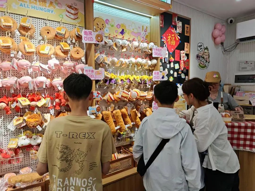 在街区的一个转角处,一家别具一格的文创店——“全员饿人”文创店格外引人注目。店门口摆放的“假过早”摊位,瞬间成为游客们目光的焦点。