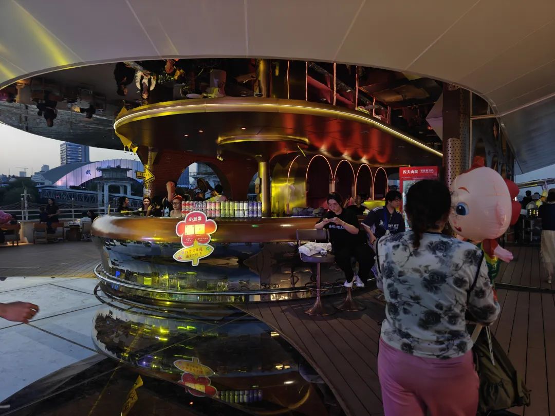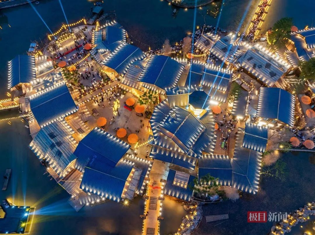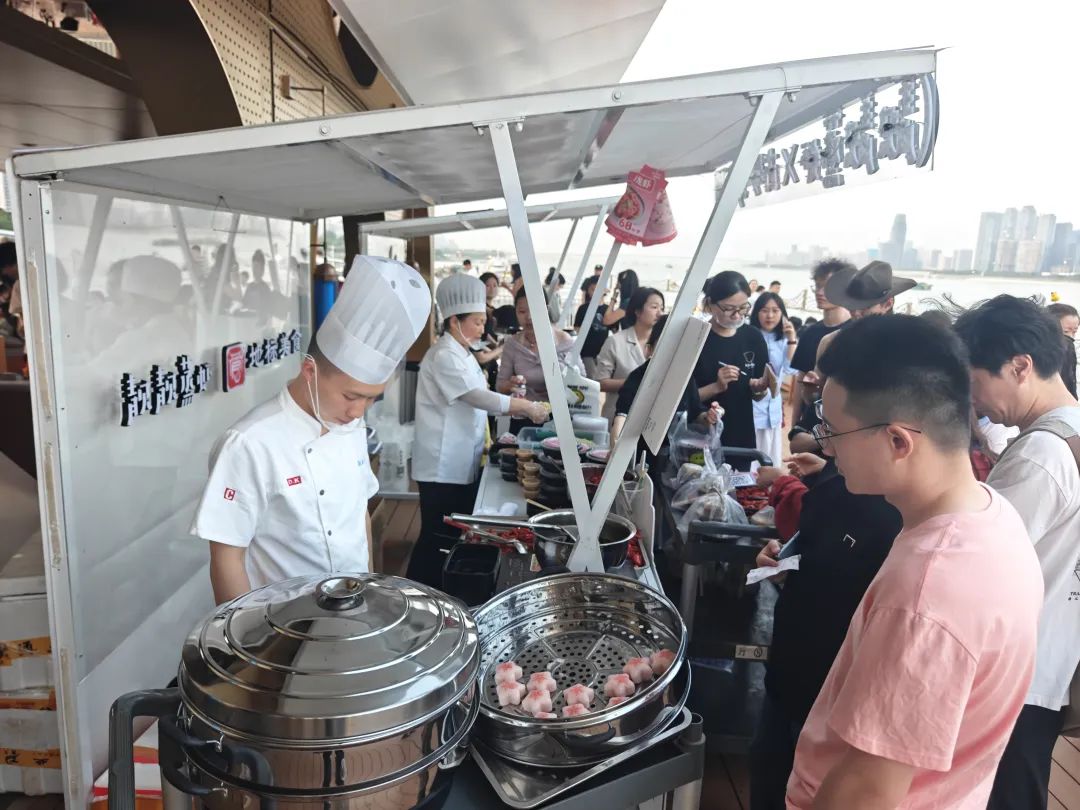 千余米宽的江面化作露天蹦迪乐园,欢呼声、音乐声交织在一起。游客们在享受音乐狂欢之余,还能品尝精酿美酒、吃小龙虾。