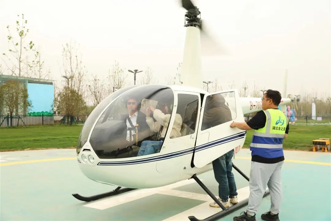 据了解,该项目位于武汉光谷豹澥湖公园“未来荟”低空文旅产业示范园内,用于载客的航空器载体为一架“罗宾逊44型”直升机。驾驶员持专业飞行执照且飞行时长超三千小时;每架次配备地面安全员进行设备双重检查。