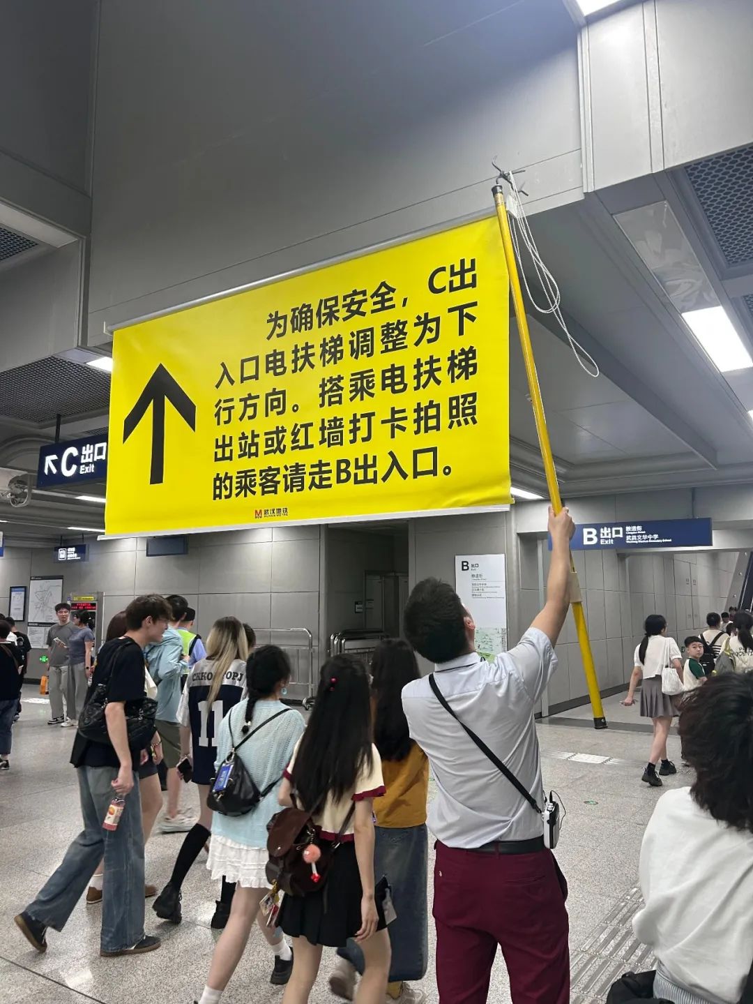 “我们在各进站口和出站口都增派了工作人员进行引导,对A出口和C出口加强平台秩序维持。”司门口黄鹤楼站值班站长江源介绍,下午五点半,他对C口扶梯电梯的方向进行了调整,较平日提早了一个半小时。