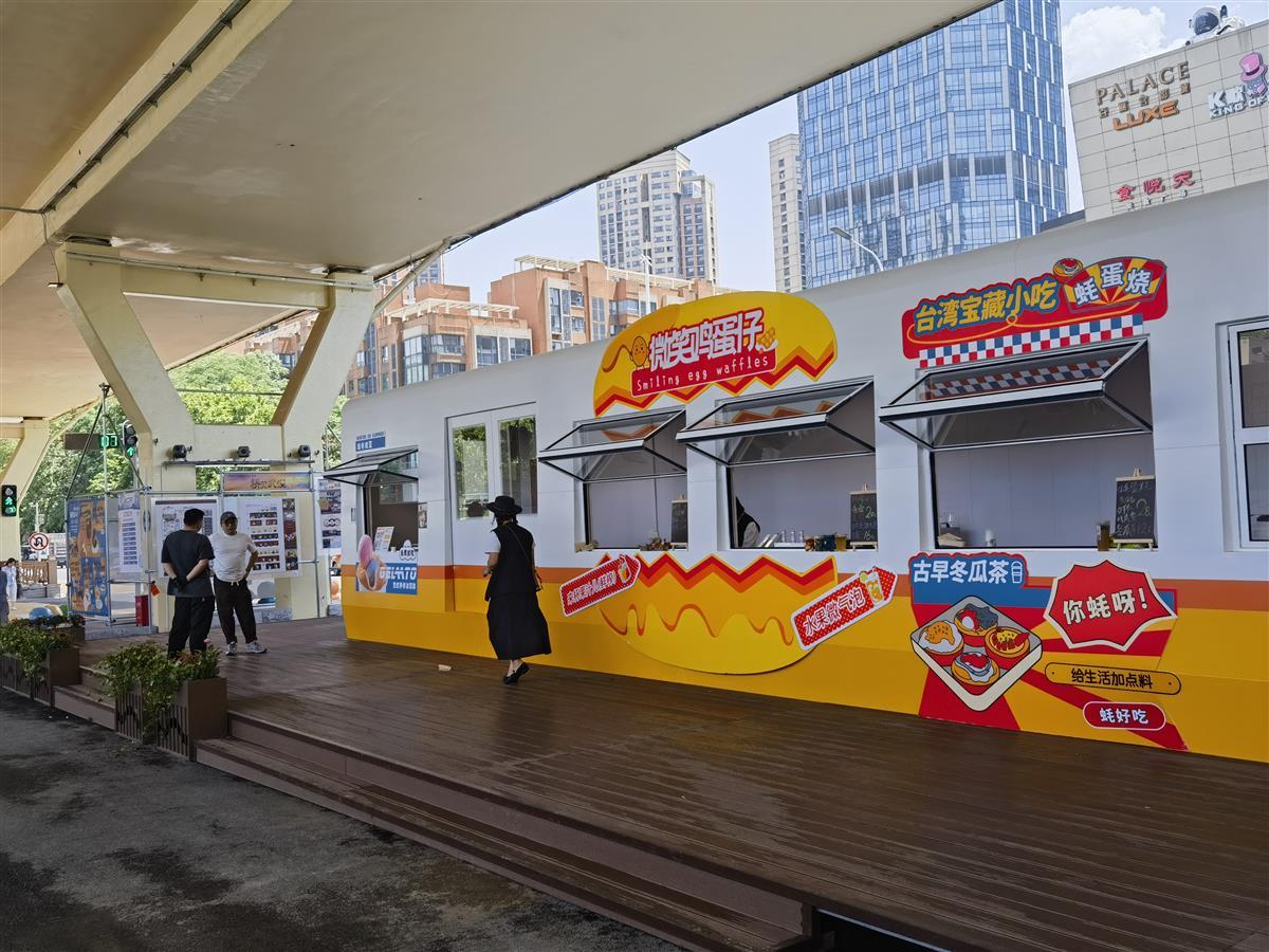 傍晚六时,整片桥下空间骤然换上夜行衣。霓虹灯牌次第亮起,生活灵感市集的80个宝藏摊位变身发光岛屿,手作银饰的敲击声、铁板鱿鱼的滋滋声、精酿啤酒的碰杯声交织成烟火交响曲。