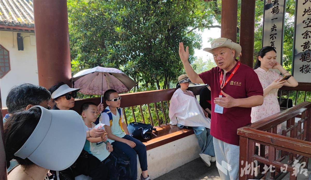 “中国四大名楼中,最有诗意的,毫无疑问是黄鹤楼。”搁笔亭畔,已在黄鹤楼当了9年诗词讲解志愿者的退休干部周智敏,热情地为游客讲述黄鹤楼的诗词故事。来自四川成都9岁小游客林博衍也欣然背诵起唐诗《黄鹤楼》。周智敏表示,要让更多中外游客了解这座“诗楼”,爱上魅力武汉。