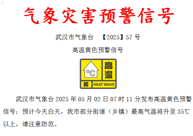 武汉发布今年首个高温预警!