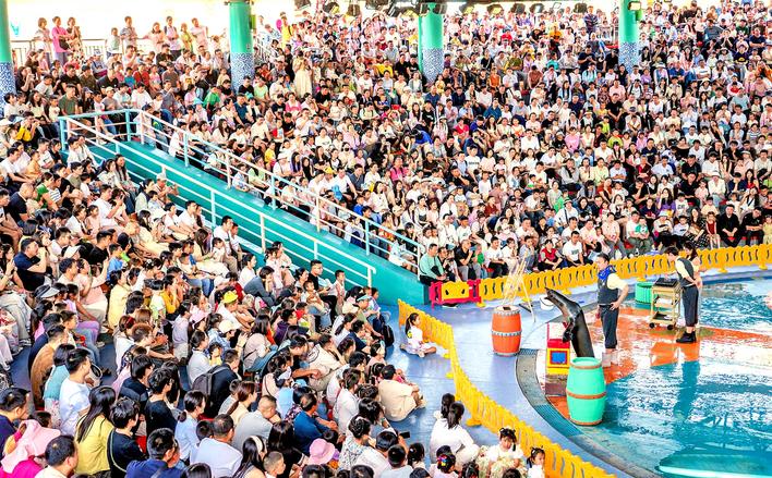 武汉极地海洋世界海狮表演吸引不少游客观看