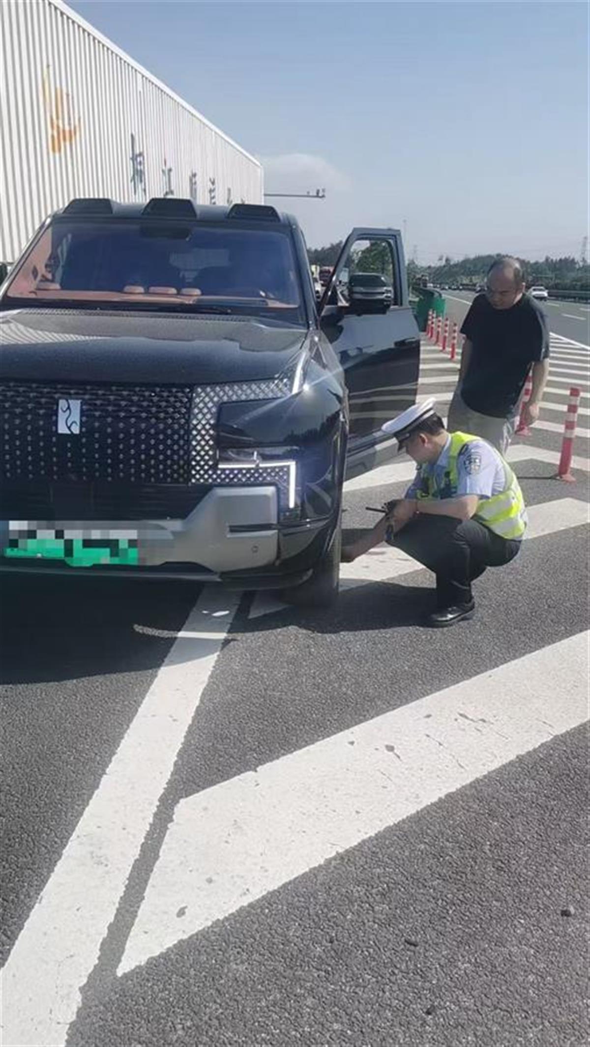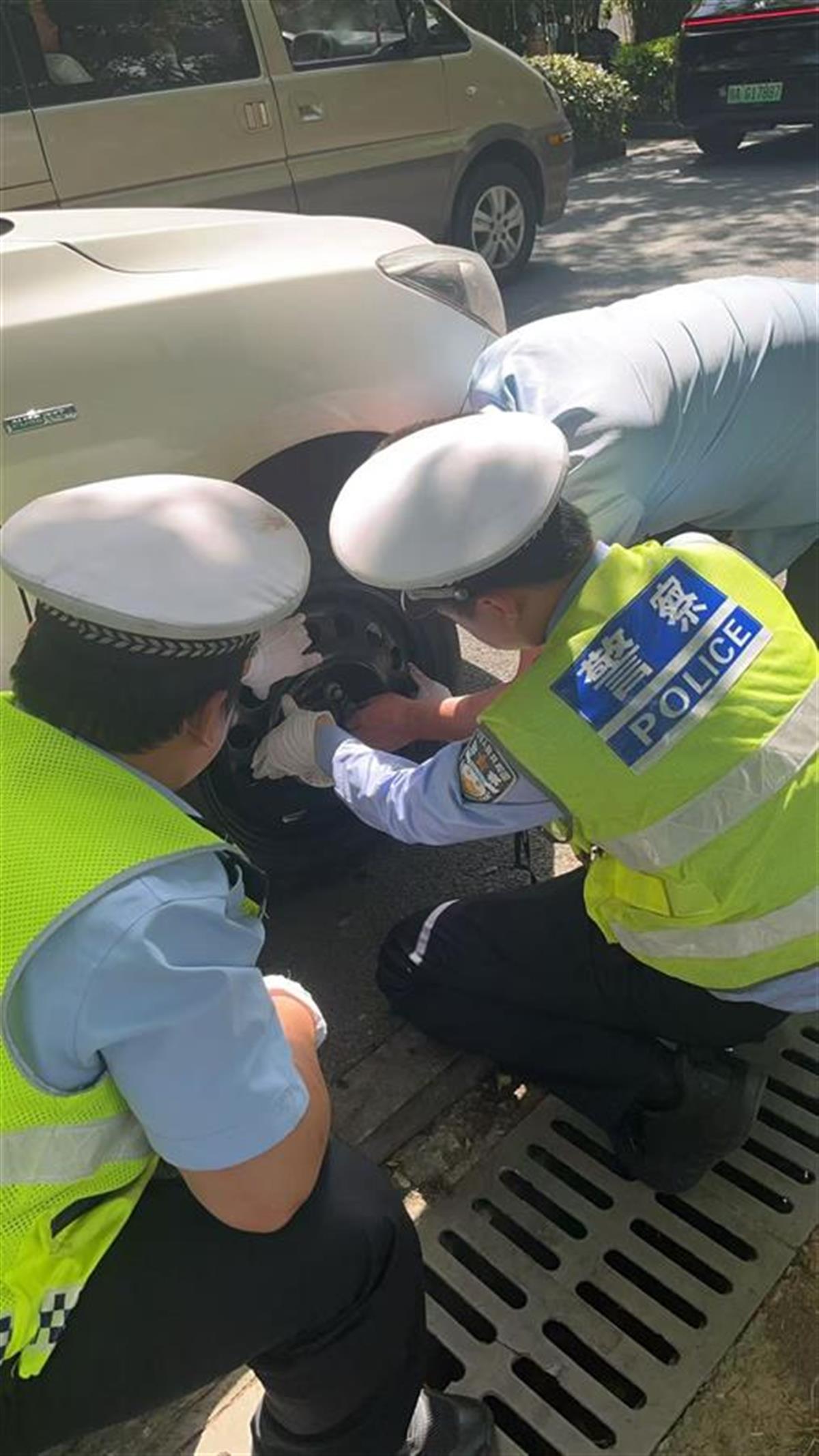 5月1日14时20分许,东湖交警李懿波带领辅警付豪、程俊康巡逻至193路口时,发现一辆轿车停靠在路边,车主一脸焦急地来回踱步。