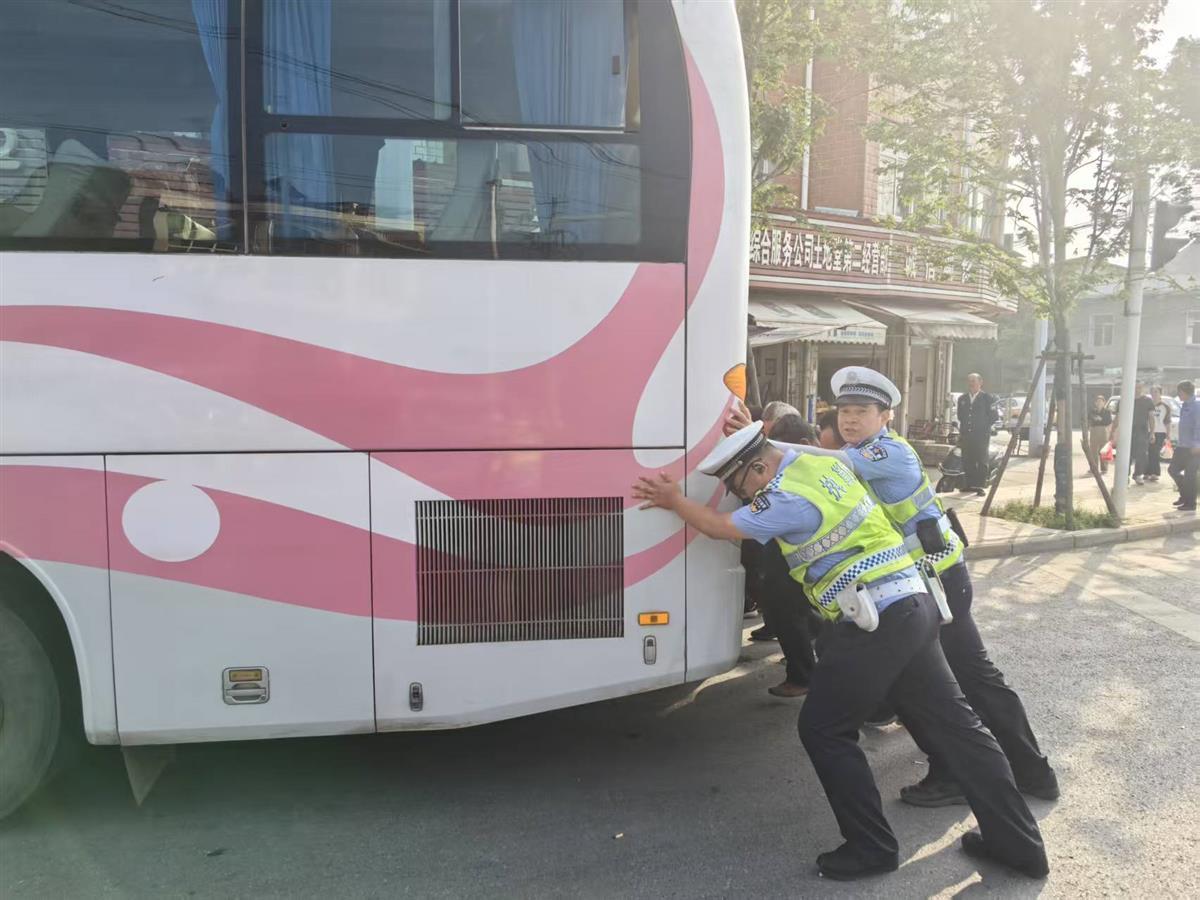 5月1日早上8时许,江夏交警吴向群带领辅警罗康、李超、孙杰在土地堂街值守时,发现一辆车牌号为鄂AC***1的大型普通客车发生故障停放在路口,当时车流较大,该客车的停放严重影响了过往车辆的正常通行,存在较大安全隐患。