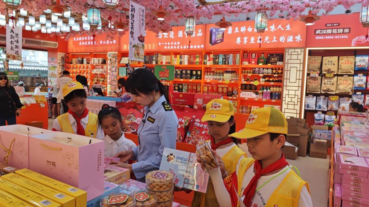 5月1日,武汉市武昌区户部巷管委会联合城管、市场监管、三道街小学“户部小侍郎”志愿服务队及湖北大学青年志愿者,开展街区安全服务行动,为游客提供贴心保障。