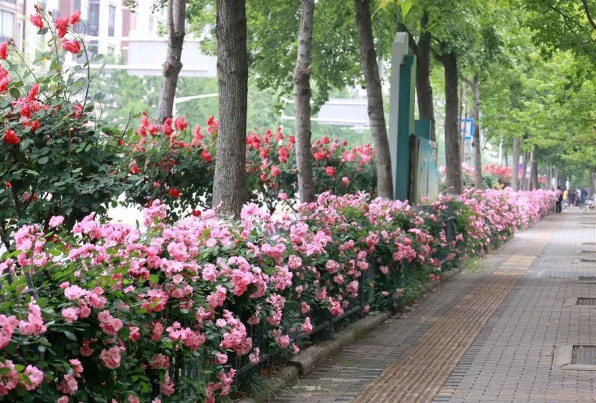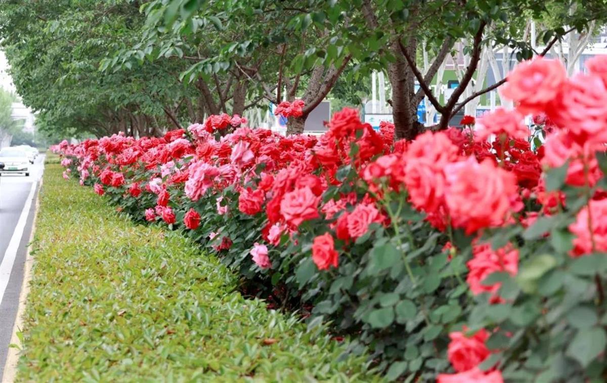 出站即入画:刚下高铁,便被白云路的月季“热情接风”——红从容、黄从容交替盛放,色彩碰撞如火焰与阳光交织,随手一拍就是大片。