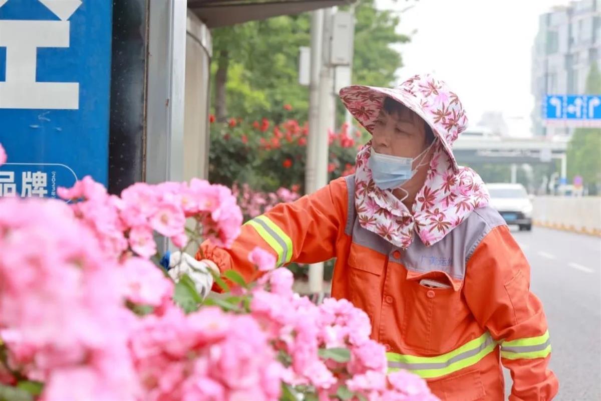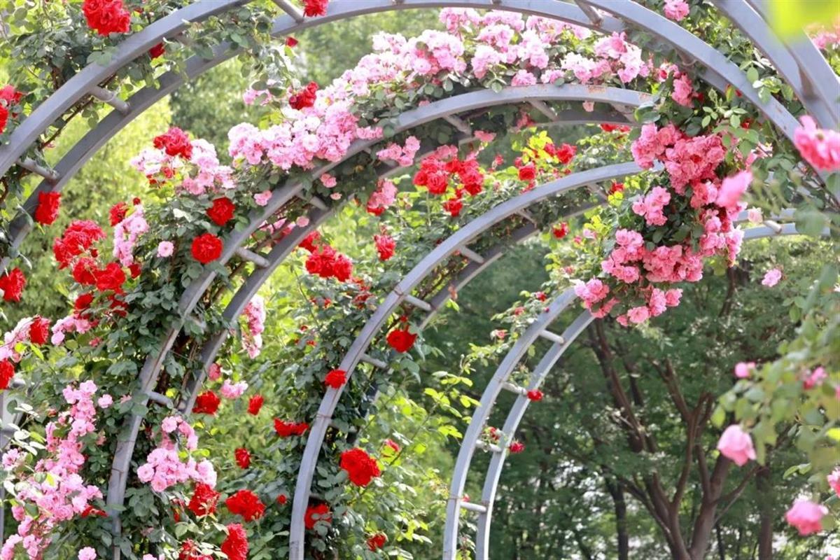 洪山区公园管理中心精心设计“地栽+藤本+树状”立体种植模式,让月季的盛花期可持续至5月底。