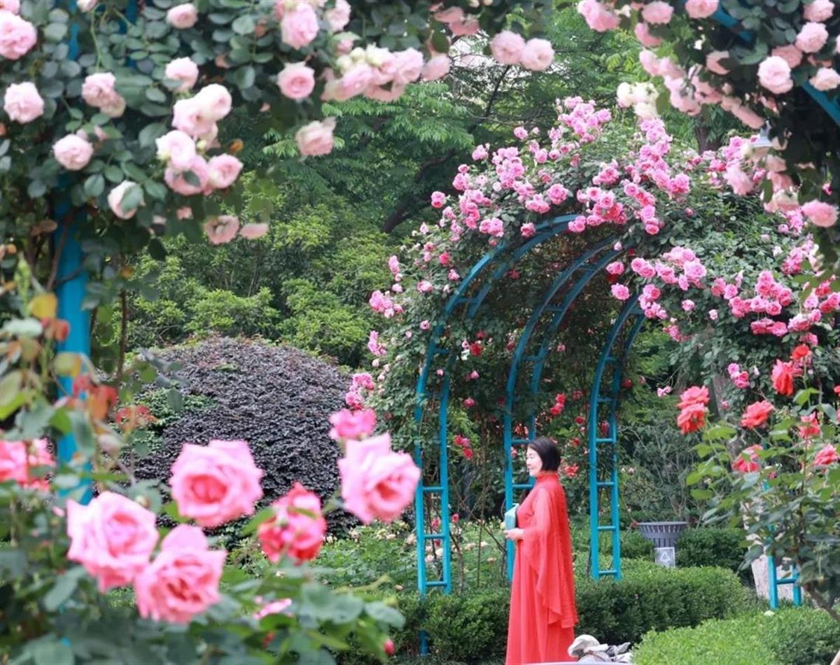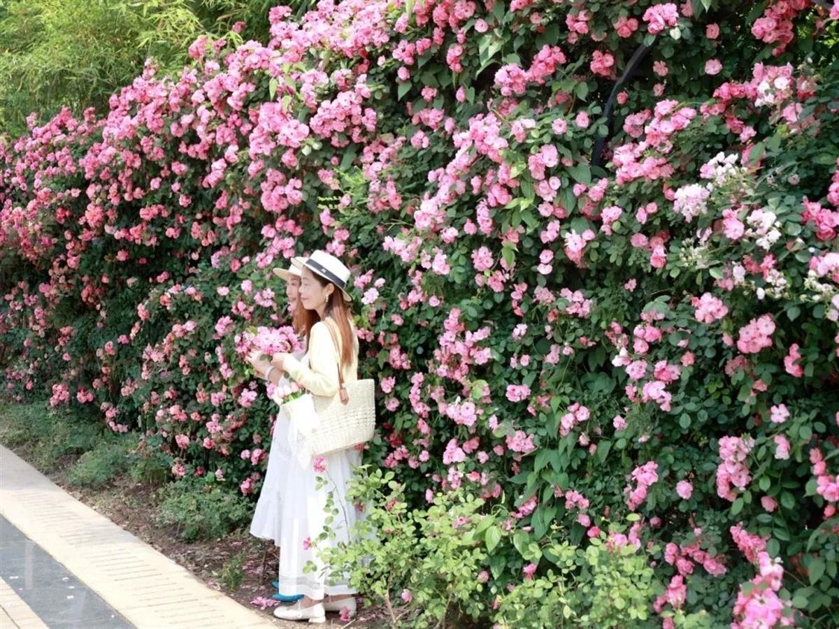 6000㎡花海,65个品种堪称月季“百科全书”,洛丽塔少女、汉服同袍的“出片天堂”。