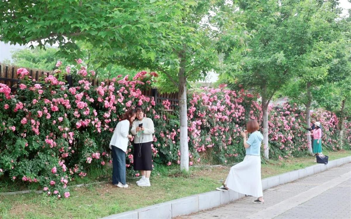 公里花墙如火如荼,藤本月季攀成“火红长龙”,随手一拍即成朋友圈顶流,这里也是本地人私藏的打卡秘境。在这里,藤本月季接力树状月季将花期延长,预计5月底前均可欣赏到不同形态的月季绽放。