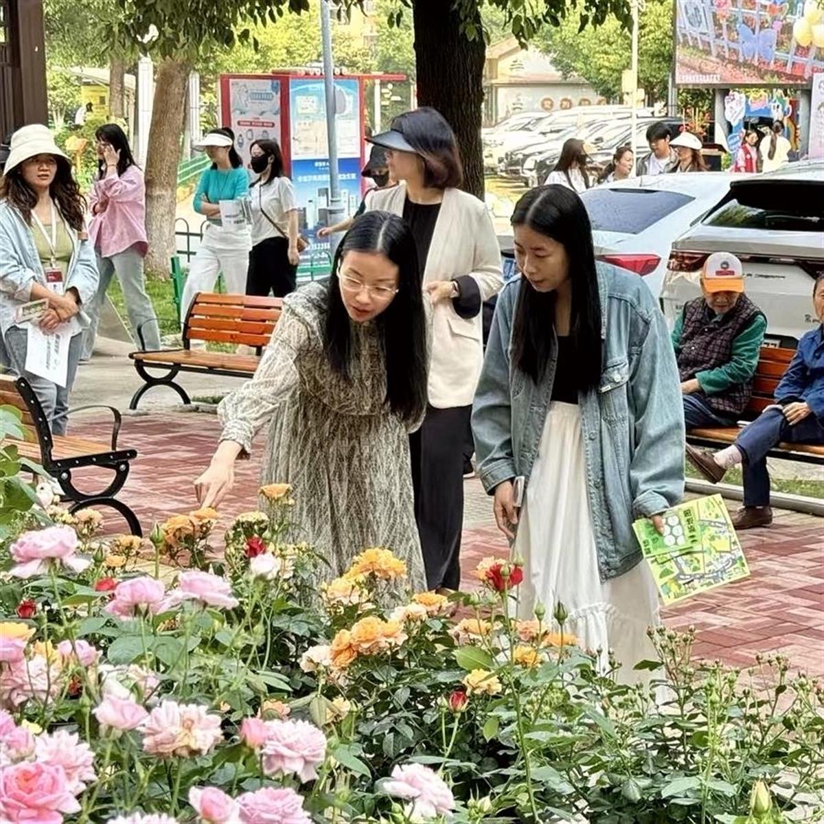 在共享花园的参观过程中,各社区工作人员沿着生态治理动线,依次探访“解忧信箱”“自然科普角”“青年创意花廊”等七大特色点位。