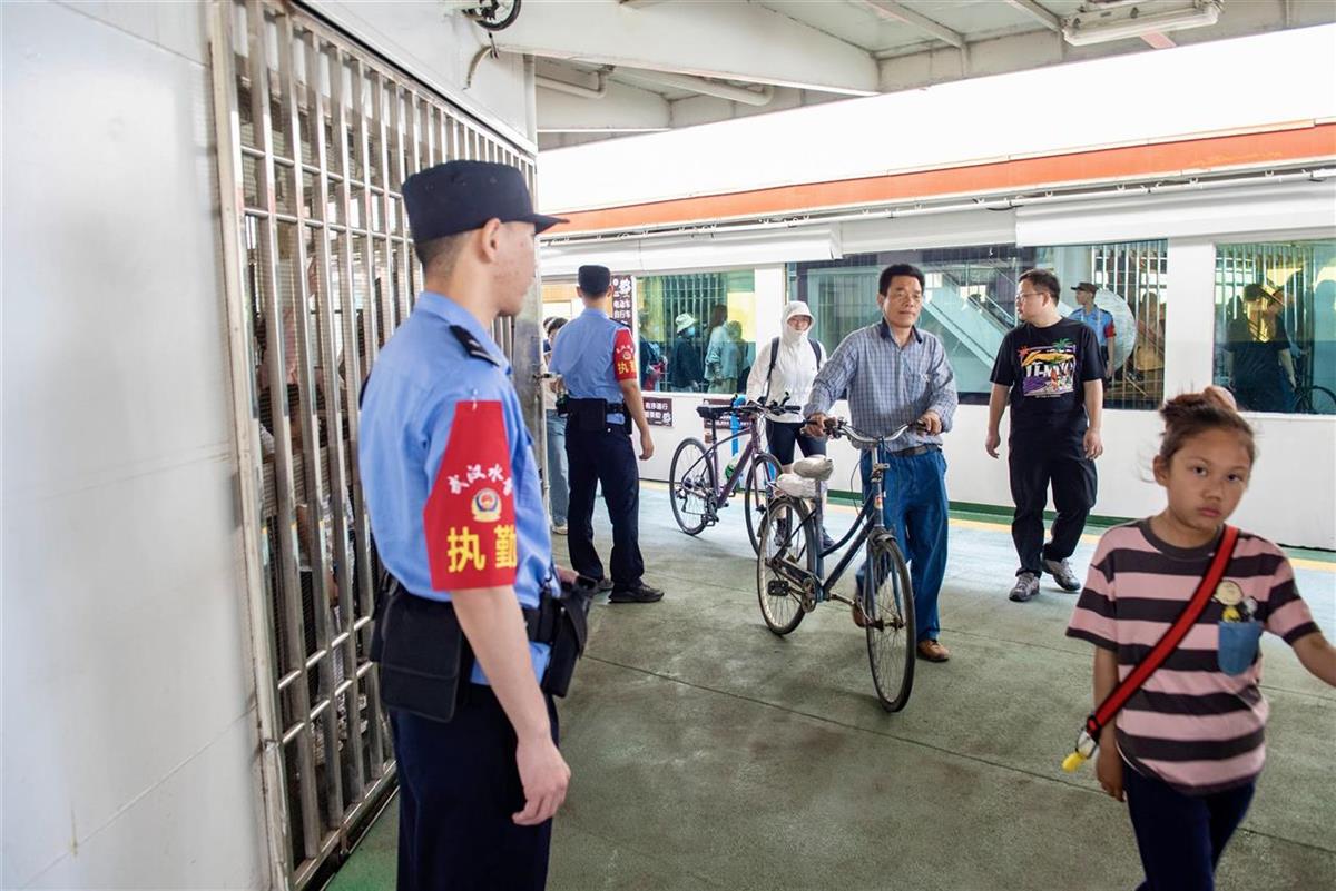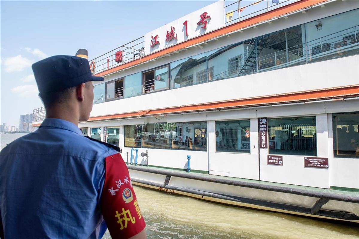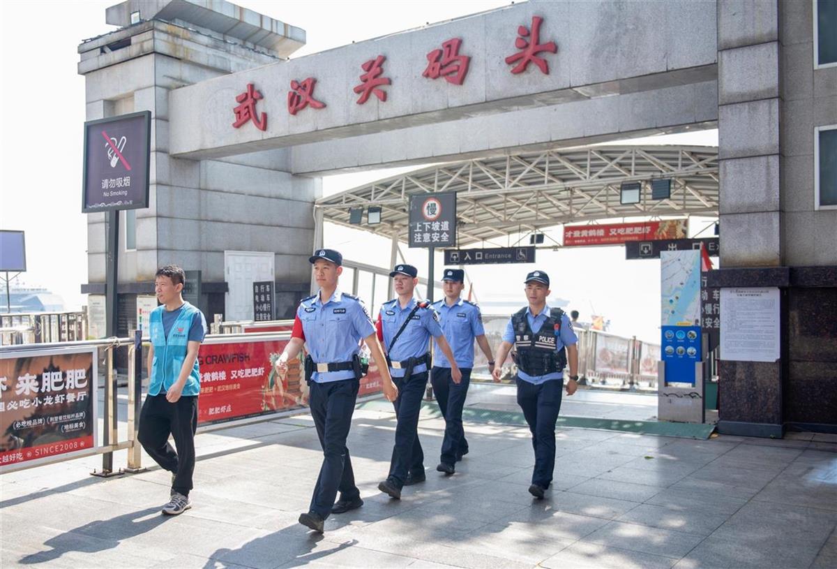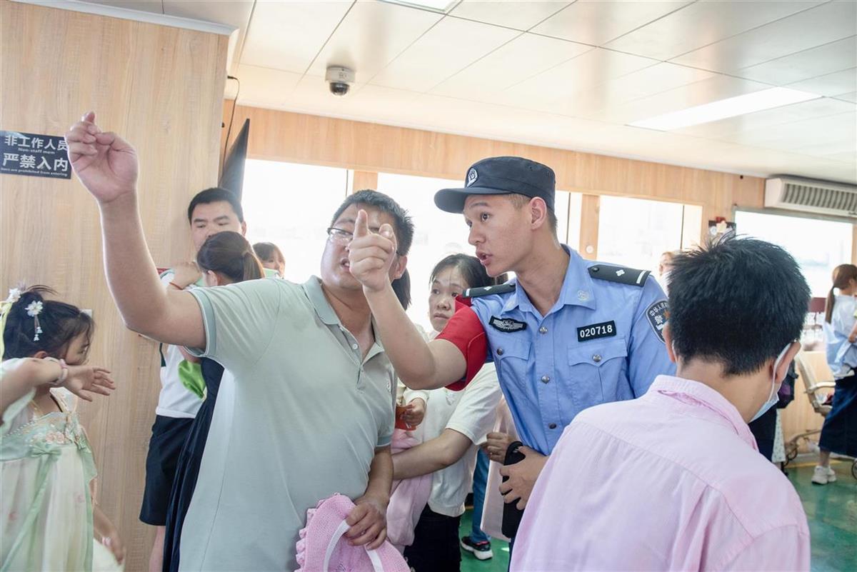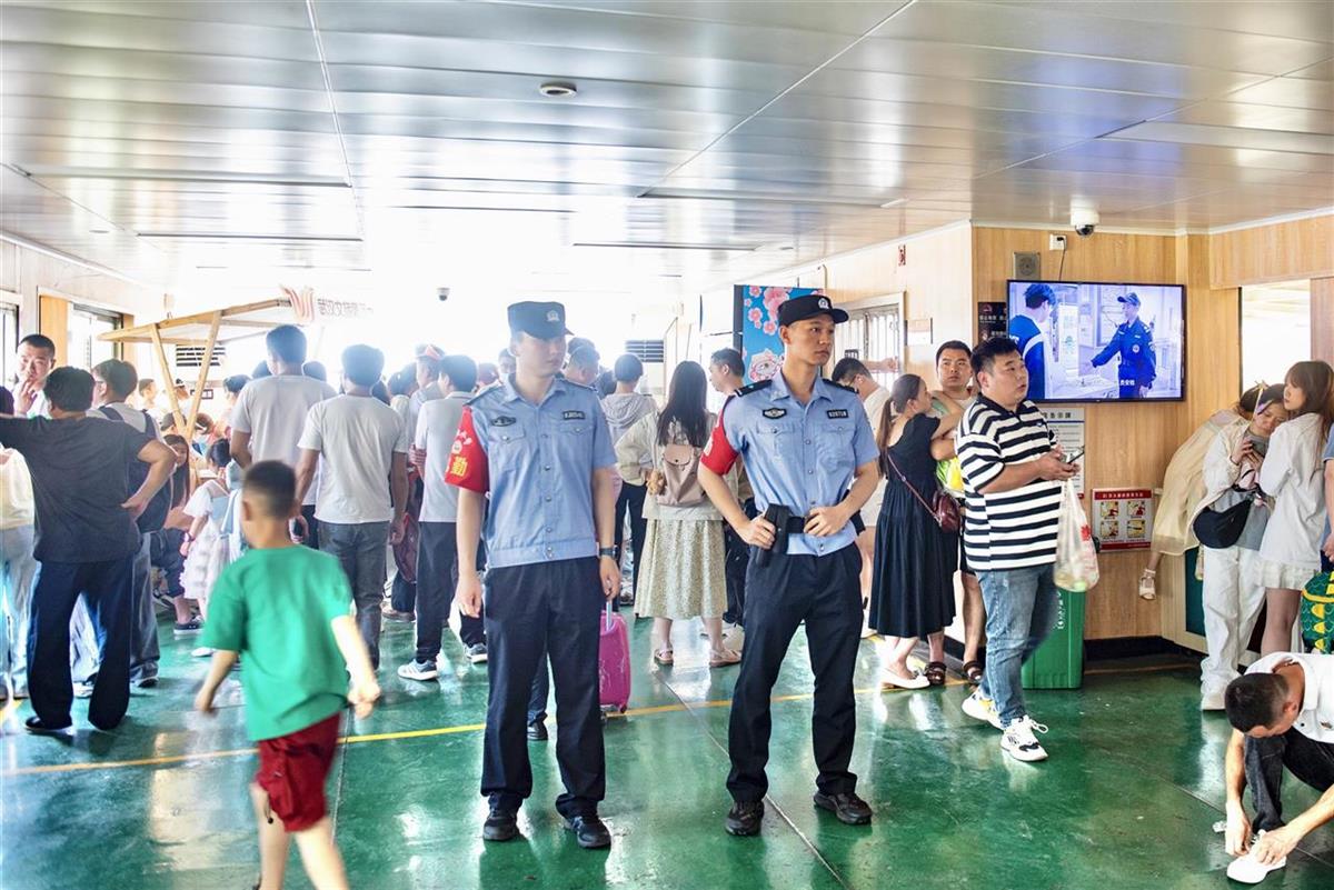 武汉水警同步配合轮渡游客量变化叠加布警:在武汉关码头的廊道上增加了巡逻值守力量,并在登船处引导客流上船下地;在轮渡航行中,青年水警们纷纷提醒着群众注意身边物品和小孩安全,并对求助一一响应;在中华路售票大厅,增派的警力配合轮渡工作人员耐心告知预约乘船公交码并指引武昌周边景点。