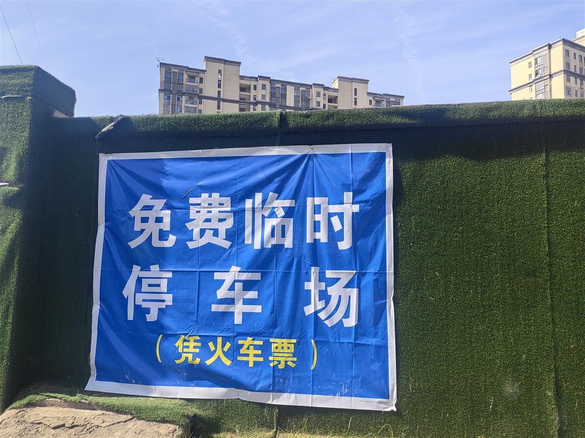 记者在现场看到,停车场旁边设置了醒目的指示标识,张贴了“凭高铁票免费停车”的标语,让来往旅客能根据指示准确地找到停车场。