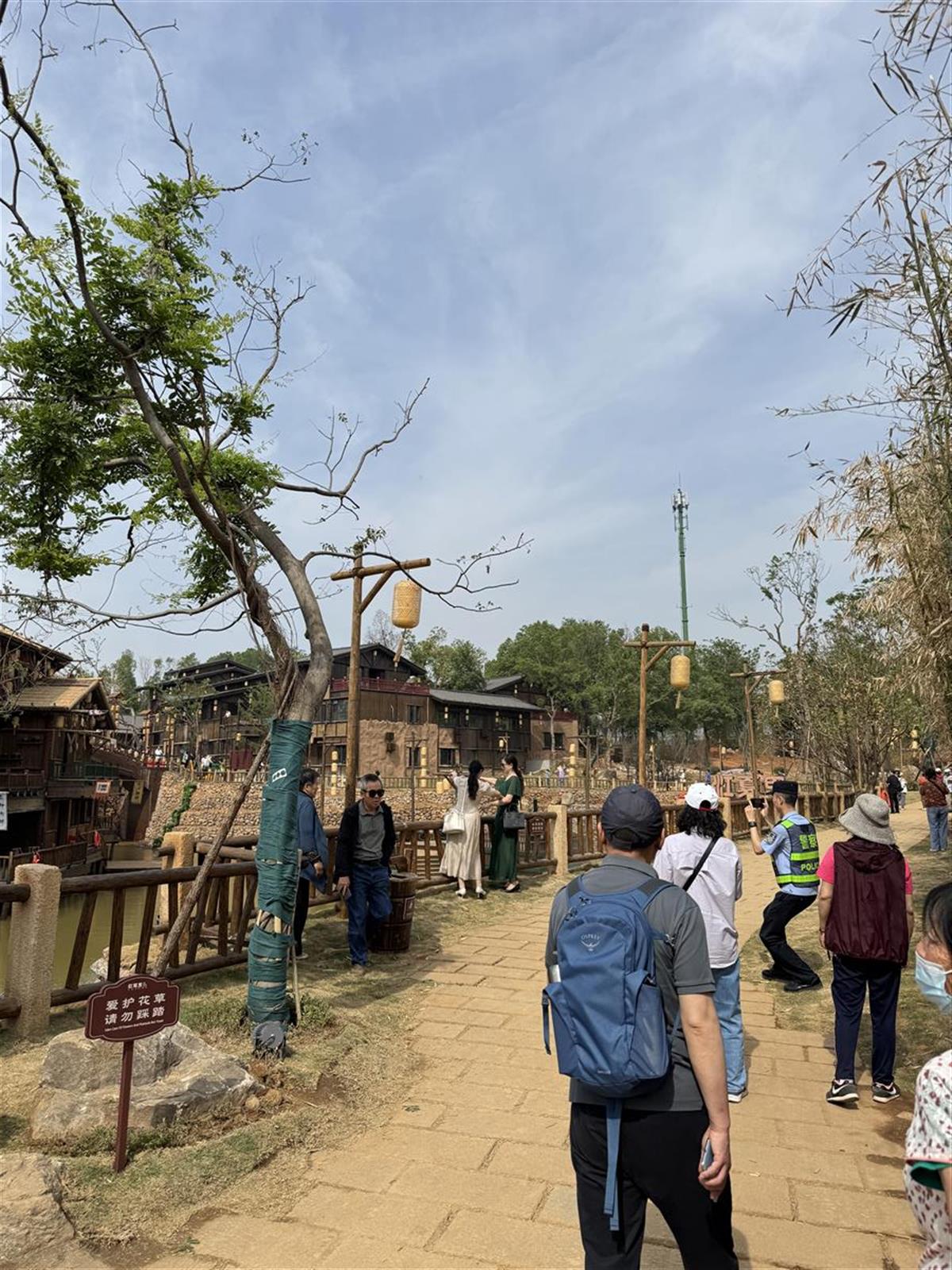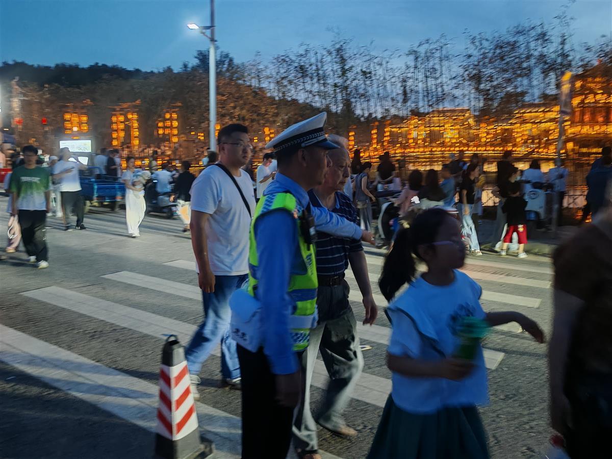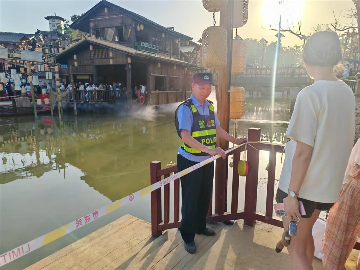 开业前两天,执勤民警辅警便早早地来到了景区“打卡”,足迹踏遍了景区每个角角落落。“这里台阶比较滑,虽然水不深,但老人小孩路过时还是有滑倒的风险的,我们在沿线岸边拉起了警戒线,每天专人值守,随时提醒游客注意安全。”五里界街派出所所长曾伟告诉记者,“不管是水边台阶,还是沿水小路,我们都安排了人员机动巡逻,一方面可以及时疏导人流,另一方面也确保能够及时有效处置各类突发情况。”