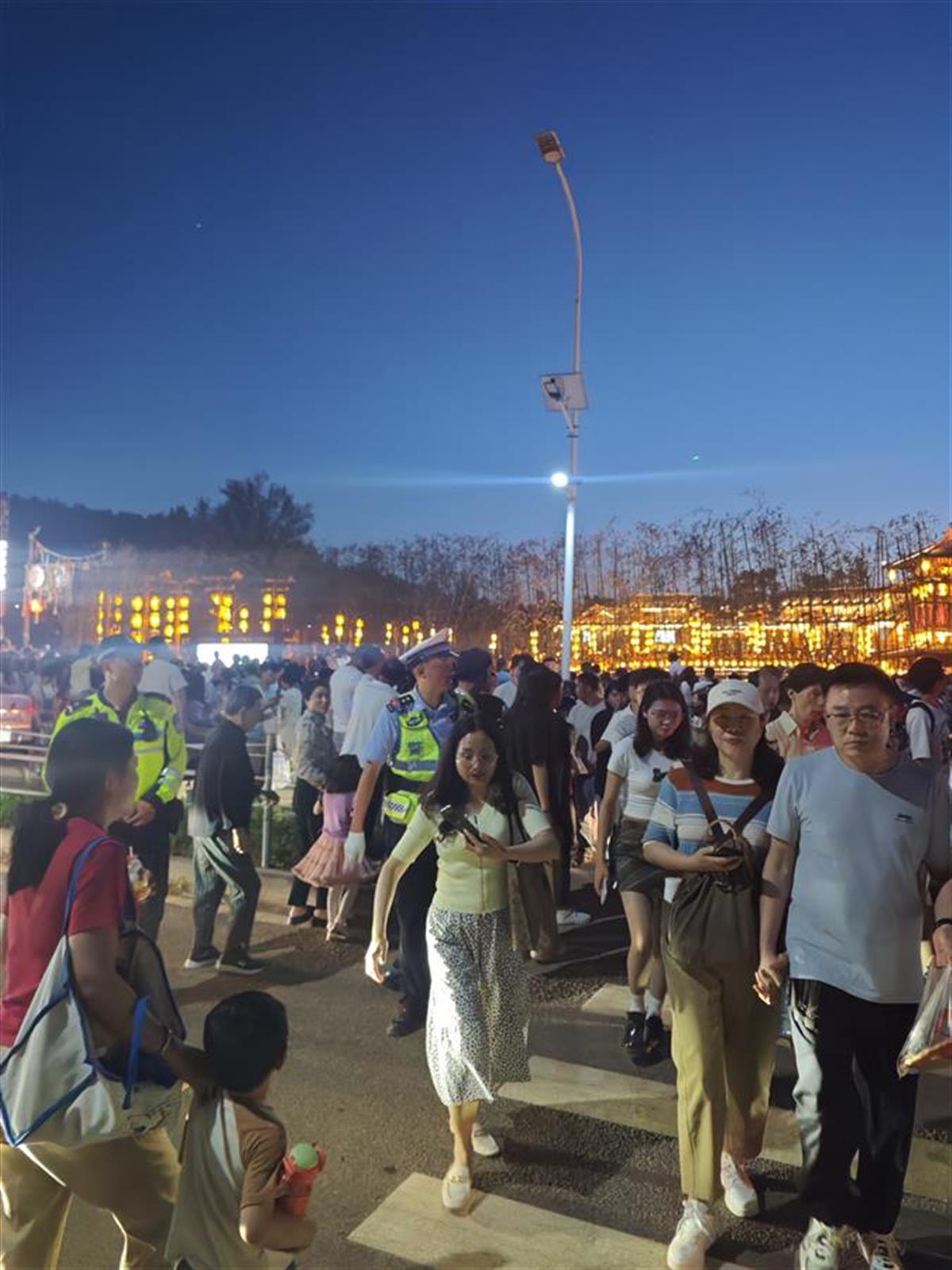 截至3日中午,五一假期期间入园人数已达5.11万人次,景区内外的每个角落,均可看到执勤民辅警穿梭在车流和人流中,分散人流避免拥挤踩踏,引导游客有序入园、车辆有序停放。同时,前后协助排查整改安全隐患16处,为游客提供路线等咨询500余次,为游客找回丢失物品2件,帮助年迈老人推车。在人流高峰期,启用小喇叭5部,喊话800余次,排查化解处理2起游客纠纷。面对游客的咨询与求助,执勤民警辅警耐心解答、热情服务,赢得了一致好评。