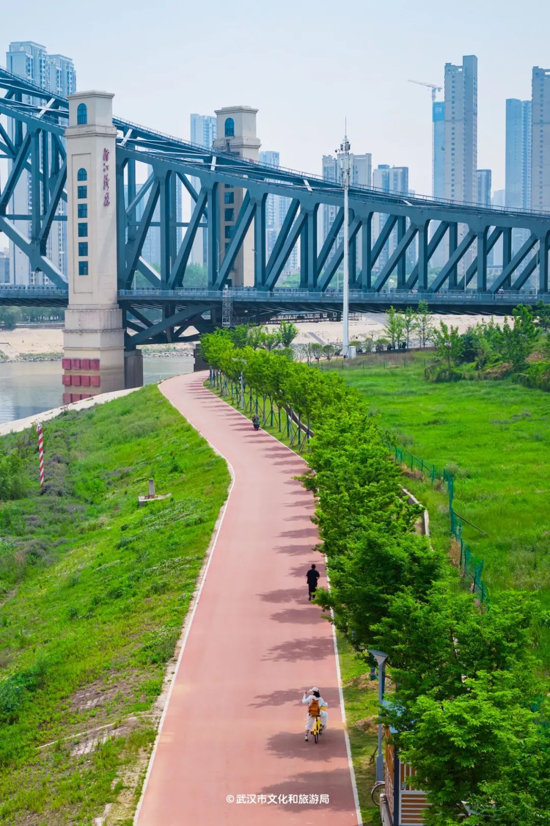 与汉水江滩的骑行道是联通的