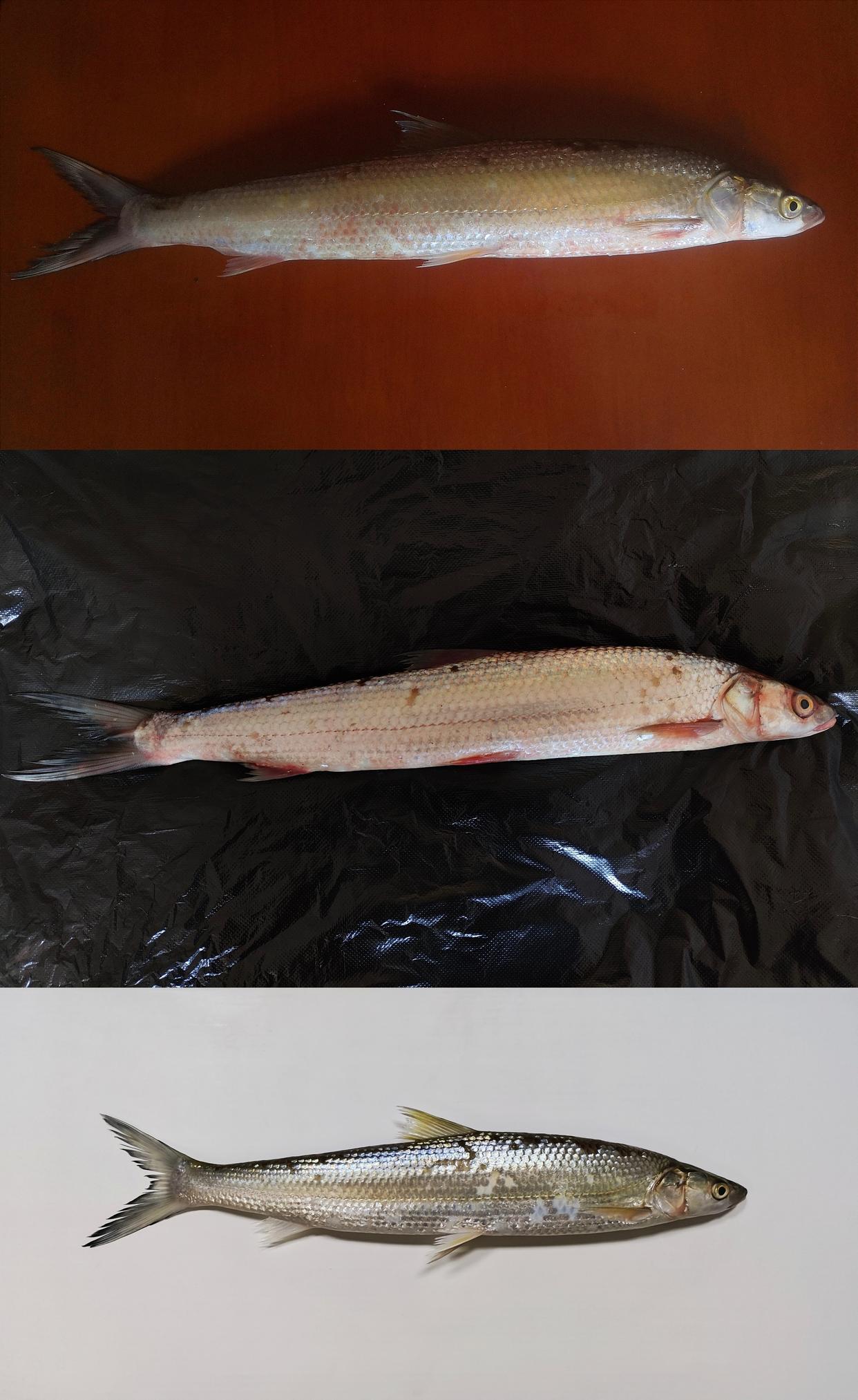 2022年、2024年、2025年在府河水域分别发现的鳤鱼标本。王新越 摄