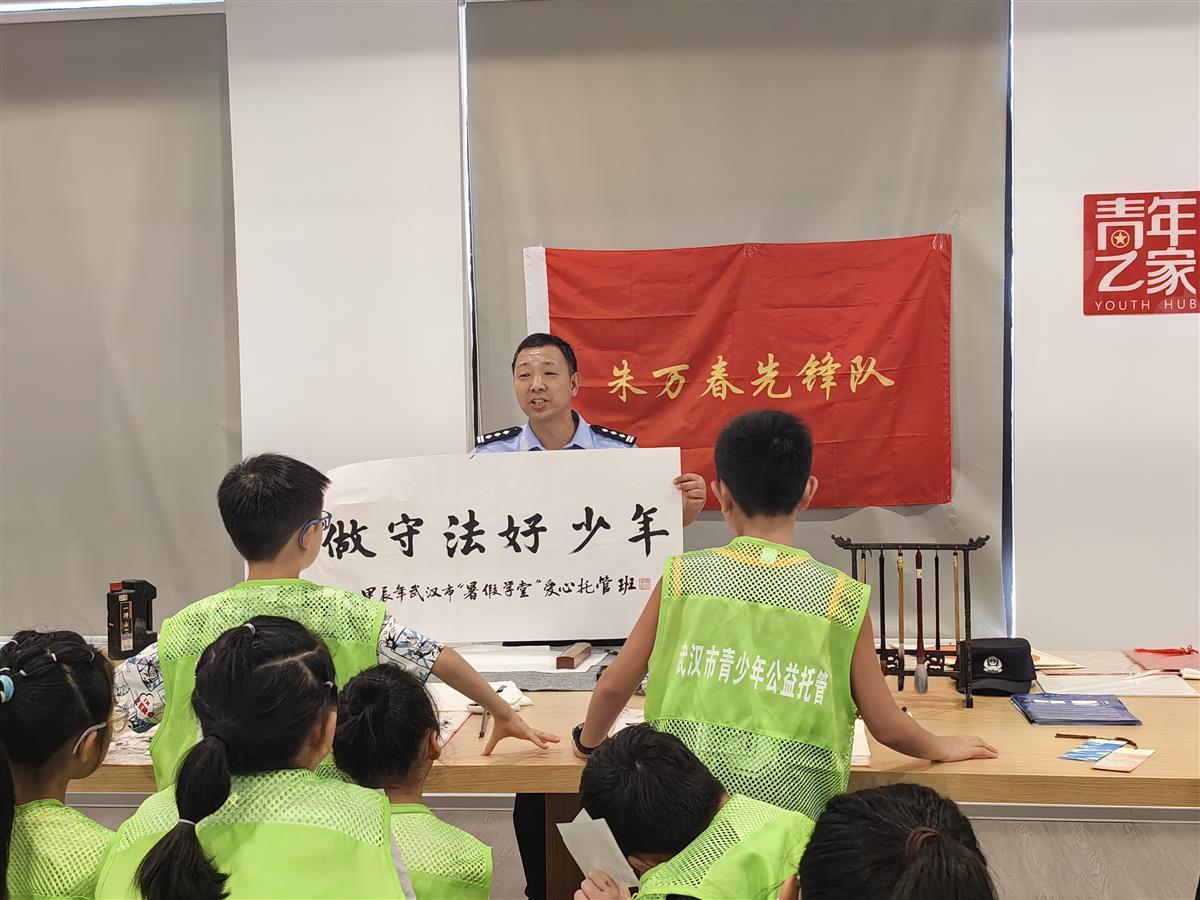 作为9所学校的法治副校长,朱万春每天早晚都会轮流在各所校门口值守护校。3年多来,无论刮风下雨、烈日炎炎,从未缺席,累计护校次数达400余次。暴雨天,积水没过脚踝,他毫不犹豫地背起学生,一步一步走过积水路段;烈日下,阳光炙烤着大地,他站在马路中间,用自己的身体为学生们挡住来往车辆,确保他们安全入校。在课堂上,他别出心裁,用书法作品“做守法好少年”,既教孩子们写书法,又在无形中向他们传递法治观念。