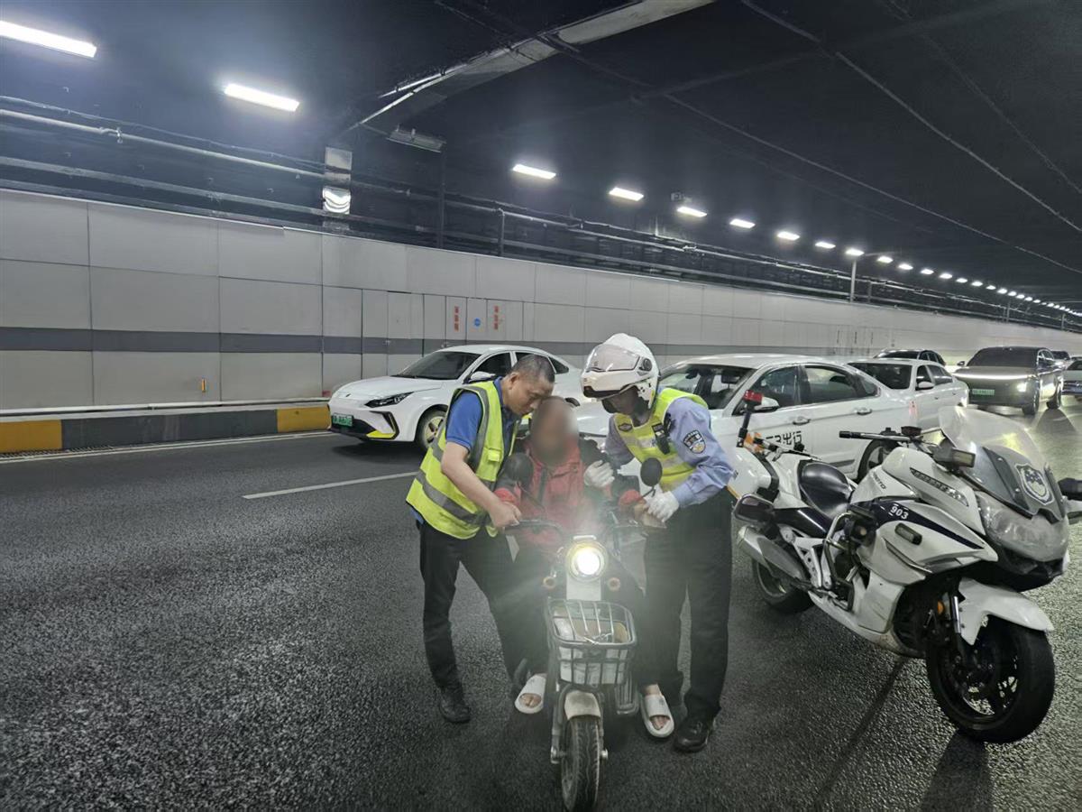 上午11时,东湖隧道内突发险情:一名老人骑着电动三轮车误入隧道,在车流中逆向穿行,迎面路过的驾驶员全都惊出一身冷汗。东湖交通大队汉警快骑队员周密、汪一鸣发现后立即截停车辆。现场简单询问得知老人姓余,今年83岁,腿脚不便不能走路。“爹爹,我们送您出去!”两人分工协作,一人驾驶警用摩托开道,一人搀扶腿脚不便的老人坐上拖车。在车上交谈才得知余爹爹独自一人住在白沙洲,子女亲人都不在身边。今天准备去东湖医院看望住院的朋友,由于不熟悉路线,误闯入东湖隧道。当拖车行至省博物馆路口时,老人突然指着路标笑道:“这里我就认得路了!”这场惊心动魄的护送,在交警开辟的“安全通道”中画上温暖句号。