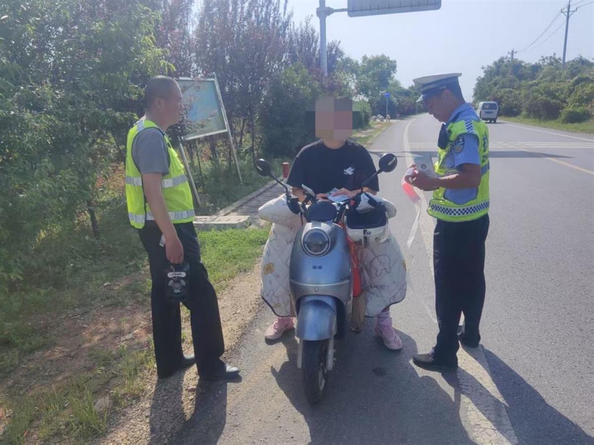 农村道路安全同样不放松。“五一”期间,三中队民辅警深入金水一村,发放宣传资料120份,面对面劝导群众佩戴安全头盔、拒乘违法载人农用车。