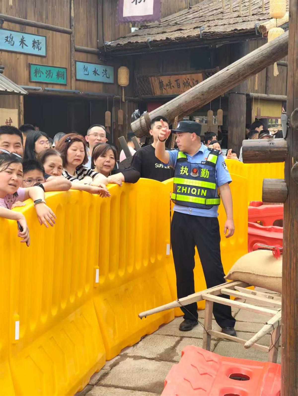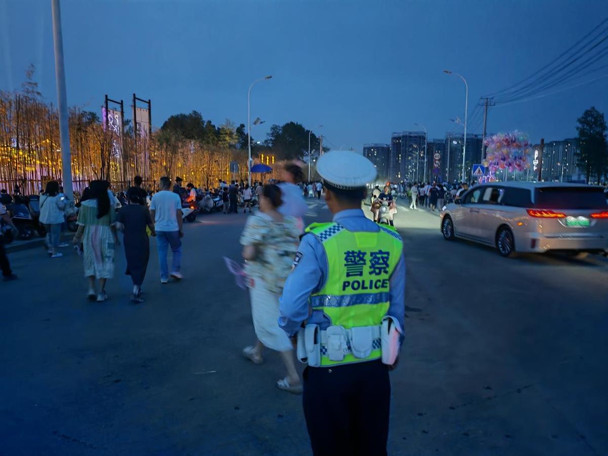节日期间,各景区严格落实“限量、错峰”要求,动态监测客流数据。在“江夏里”景区,江夏公安依托智慧安防系统,在主要出入口安装客流统计摄像机和高空球机,实时监控人流密度,精准调配执勤警力。5月1日正式开园以来,日均投入60余名警力,全天候驻守出入口、拐角险段等关键点位,通过手势指挥、喇叭喊话等方式疏导人流车流,累计引导游客4.8万人次,帮助找回走失儿童、遗失物品等群众求助30余次。