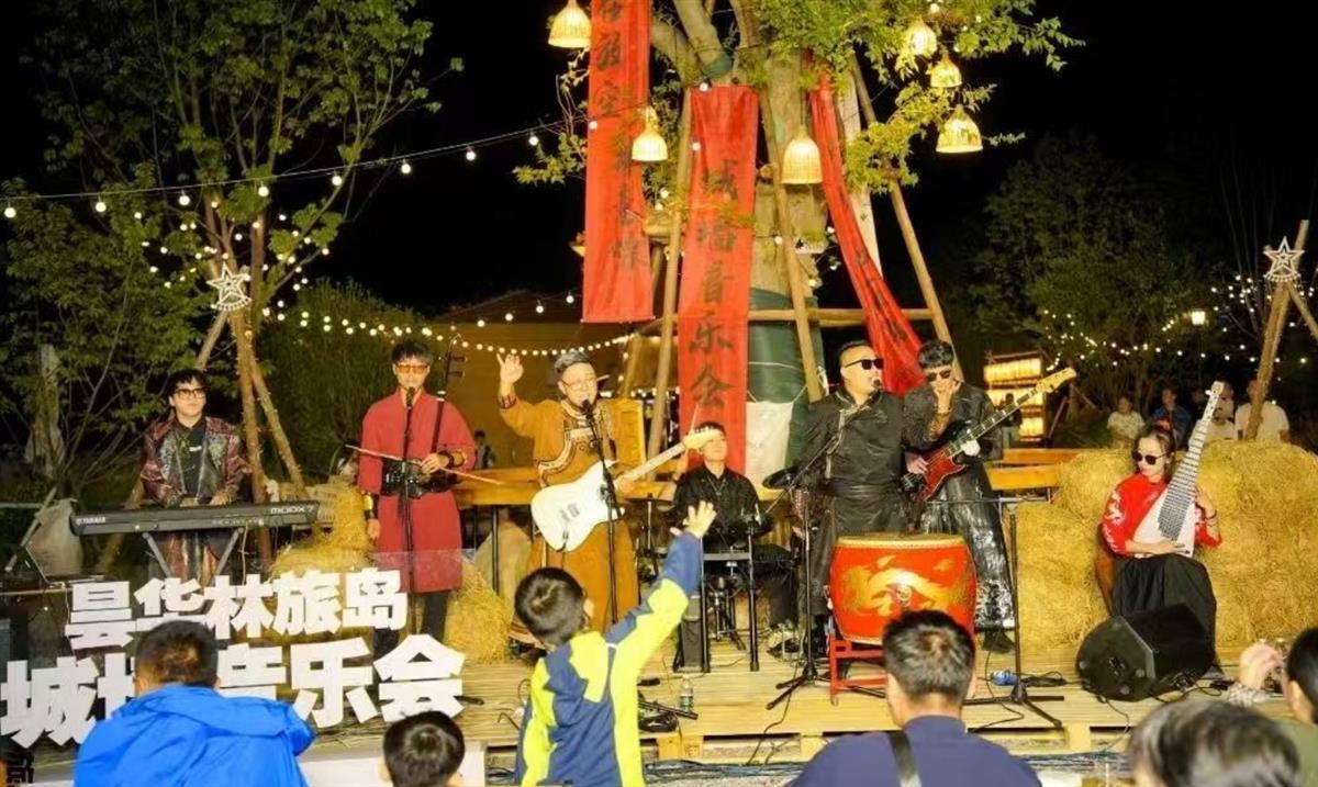 临近傍晚,在昙华林山顶,一场小型演唱会正在火热上演,歌声穿越城墙,飘向夜空,不少游客跟着一起唱起来,在音乐声中享受昙华林山顶的夜晚。