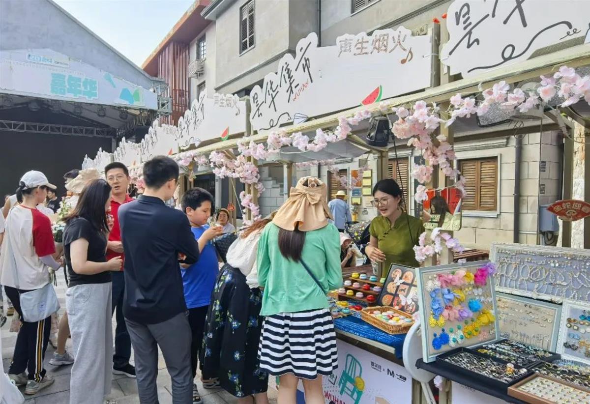 记者跟随游客一同乘坐小火车登顶昙华林后,又来到特色市集,五一期间,昙华林集结100余个特色摊位,推出六大主题市集,游客既可淘到限量文创,还能品尝武汉老字号与网红美食,满足“逛吃购”一站式需求。