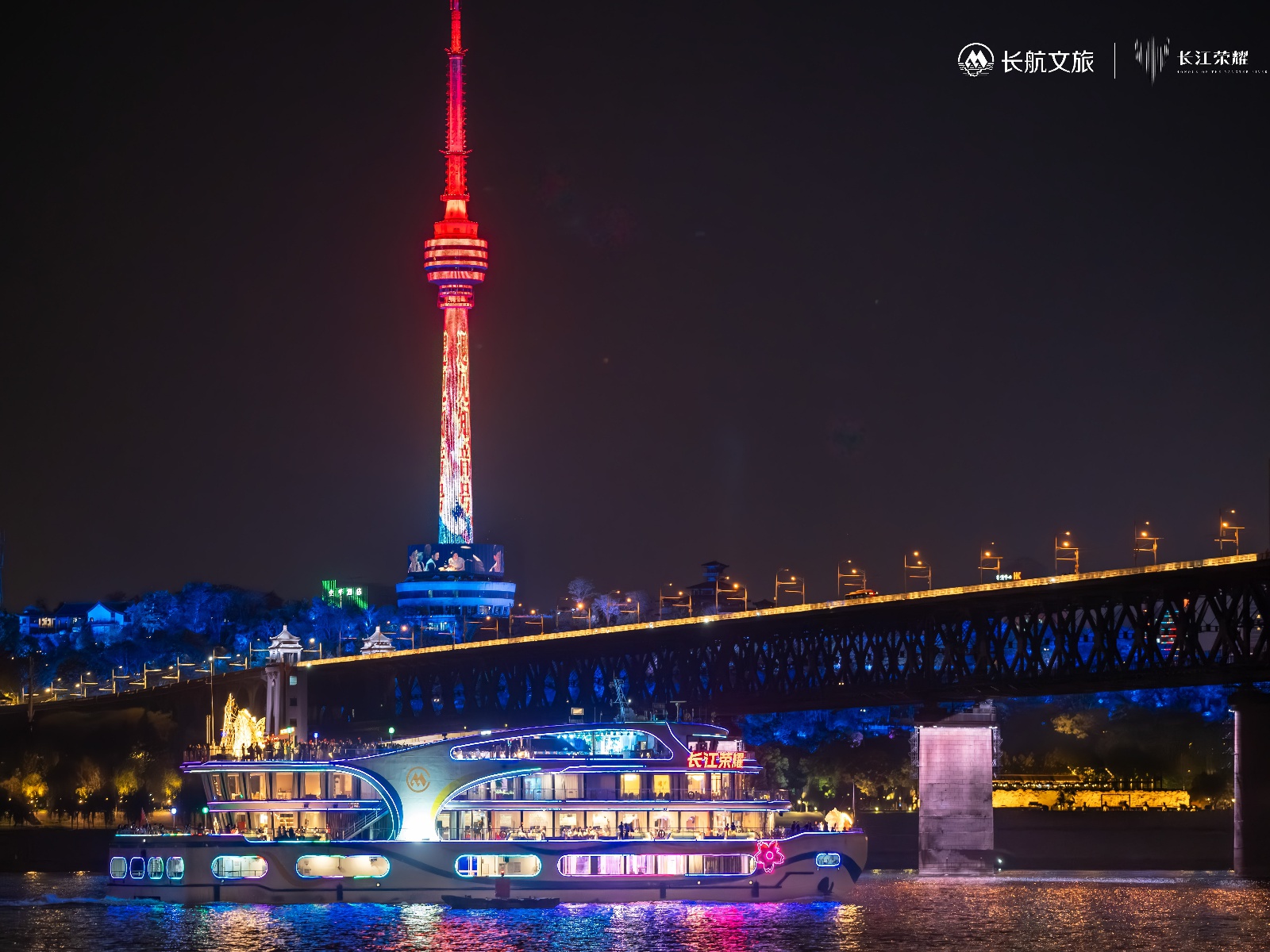 在武汉,“过桥”与“过早”“过江”一样,早已融入城市血脉。“长江荣耀号”上的“过桥仪式”,更是成为武汉文旅新名片,向世界诉说着江城的温情与浪漫。五一假期,由武汉市文化和旅游局主办的2025武汉长江旅游季・长江甲板声浪派对拉开大幕。古琴号、知音号、长江荣耀号等11艘长江游船列阵江面,载着五湖四海的游客同时开启游览夜景。五一假期前三日,两江游览11条船接待游客近3万人,较去年同期增长约15%。长江荣耀号每晚连开三班,全部满载。截至5月4日,《知音号》演出场场爆满,其中外地观众占七成。