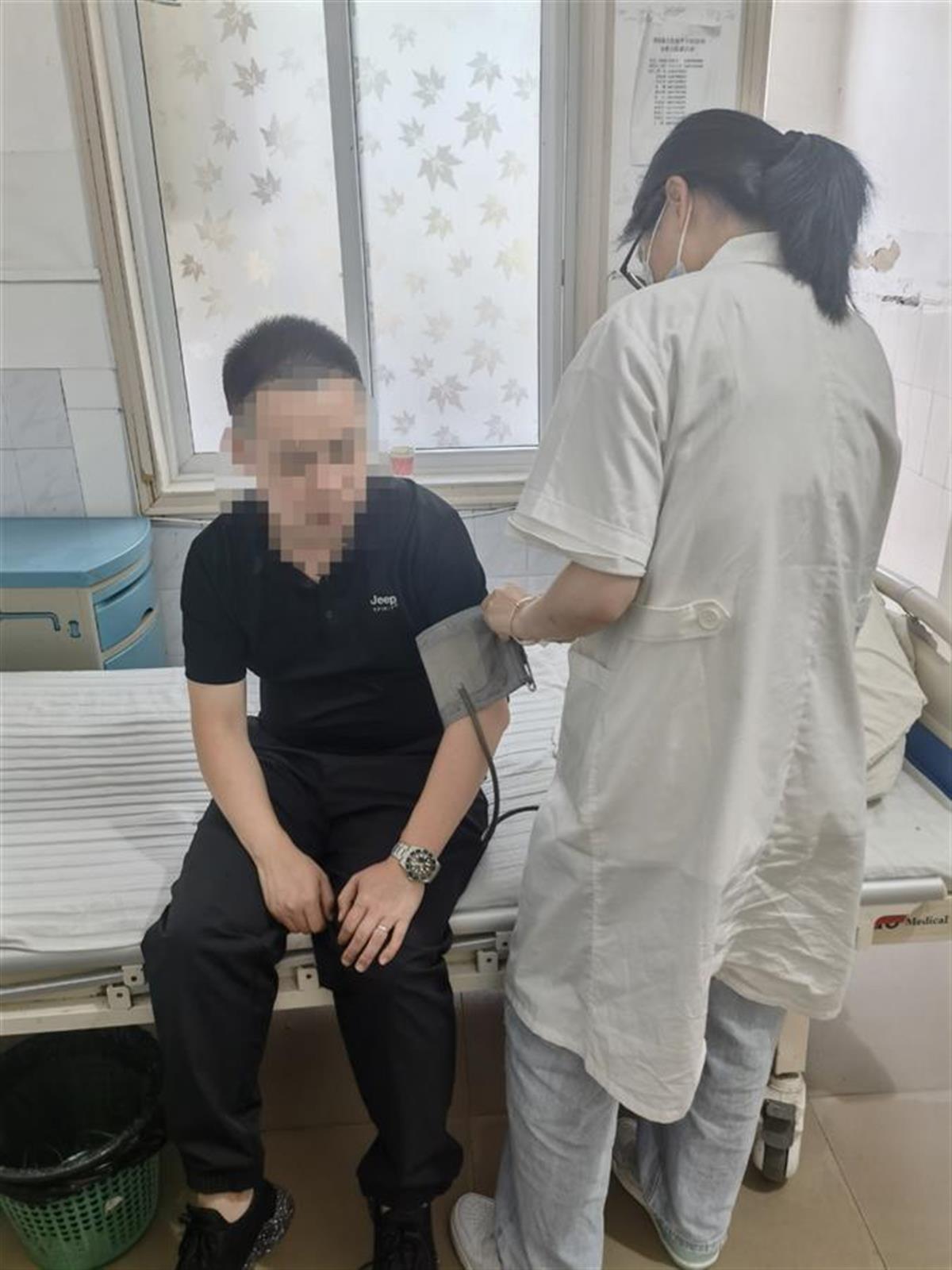 经询问得知,这对夫妻驾车途经高速时,患有低钾血症病史的丈夫突然出现手脚无力症状。车里又没有药品,妻子情急之下报警求救。危急时刻,民警立即将该男子扶到车上,化身代驾接管患者车辆,将患者紧急送往就近卫生院接受治疗。