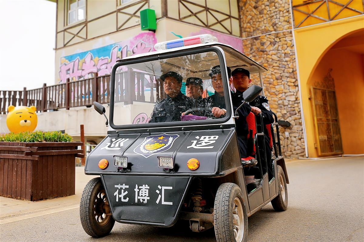花博汇景区占地5300亩,集文化旅游、亲子度假、休闲娱乐等功能于一体,假日高峰期日均接待游客达2万余人,2024年景区累计接待游客量达200万人次,综合营收突破3亿元,是大集街派出所日常重点守护点位之一。景区占地面积大、游客众多,如何织密平安网,做到安全防范无死角?大集街派出所构建四维护游体系,即景区门口建有警务室配备专职警力,路面部署动态巡防力量,空中安插“智慧之翼”,后台搭载动态感知设备,相互补位、相互策应、相互支撑。