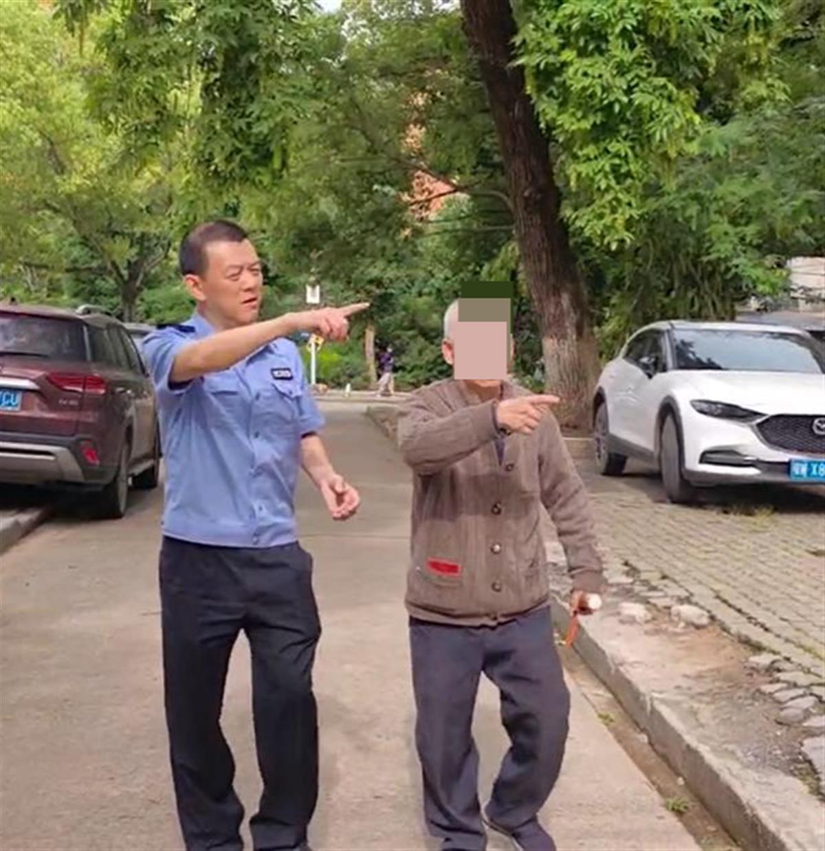 派出所门前,一位银发老人的身影映入眼帘。他身着灰色毛衣外套,黑色长裤笔挺,蓝色运动鞋沾着些许晨露,手杖稳稳撑在地面,脊背挺得笔直,浑浊的双眼里却透着一股令人动容的坚毅。陈震宇询问老人住址,老人只反复念叨“纸厂小区”,具体门牌号却怎么也想不起来。“可能是年纪大了,犯迷糊。”陈震宇低声说道,与段永强交换了一个关切的眼神,小心翼翼地扶老人上了警车。