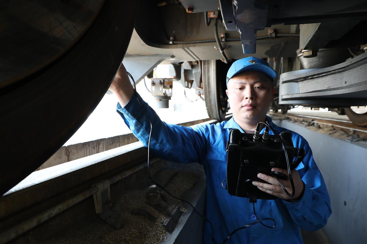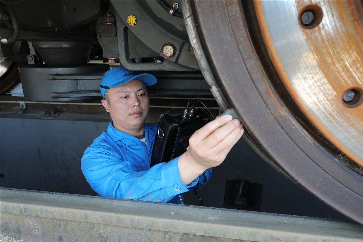 邓凡是一名“从医”16年的资深影像科医生,他负责入库检修机车的轮对、车钩、转向架构架、轮箍等关键部件的C4、C5修探伤作业,每一次穿梭在各种配件之间,凭借精湛的探伤技术探知机车各个部件,这一过程就像医院给病人做“B超”,为机车的安全运行保驾护航。