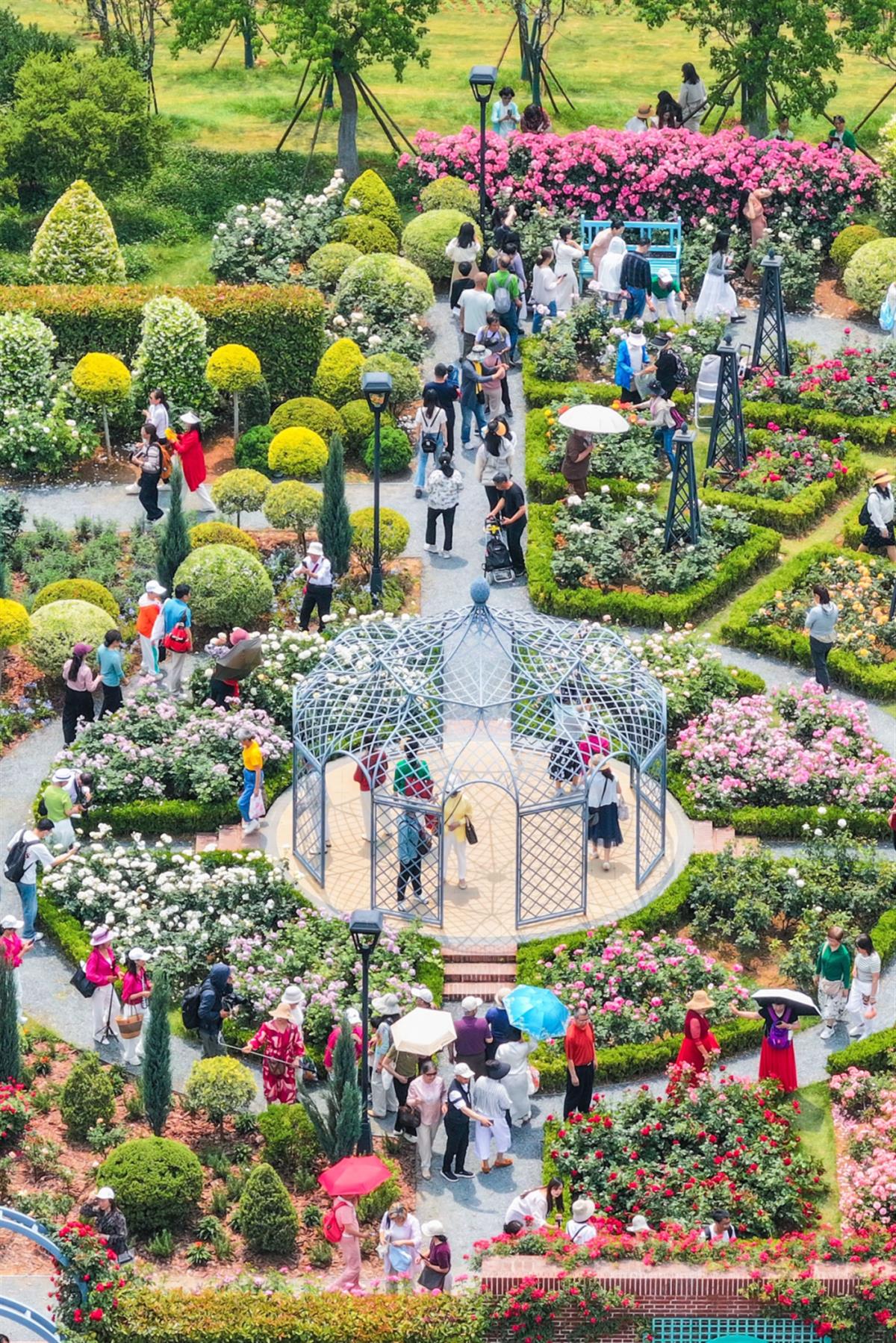 在黄鹤楼公园展区,看群鹤翩翩起舞的意境;在中山公园展区,看粉色微缩版的过山车;在粉雾花岛、罗马花庭等场景前打卡拍照;在温室花棚里买花、学园艺知识……这个假期,花点时间逛公园真的好浪漫。