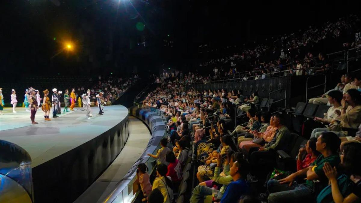 这个假期,汉秀剧场里亲子杂技剧《黑白侠影·太极熊猫》连演九场,场场爆满。