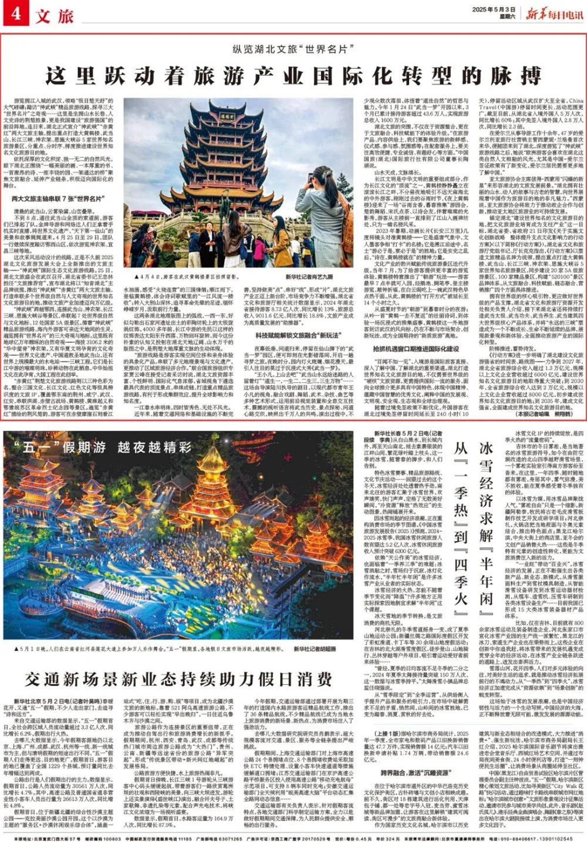 5月3日,《新华每日电讯》发表题为《纵览湖北文旅“世界名片”:这里跃动着旅游产业国际化转型的脉搏》的报道。