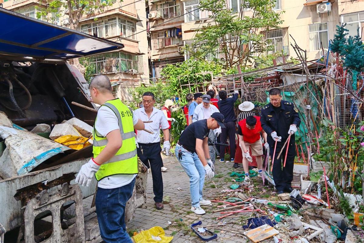 整治行动当天,街道综合执法、公管办、社区、物业、环卫所、志愿者共20余人参与拆违工作。大家搬的搬,抬的抬,扫的扫,就连聂婆婆本人也感动地加入清理行动中。