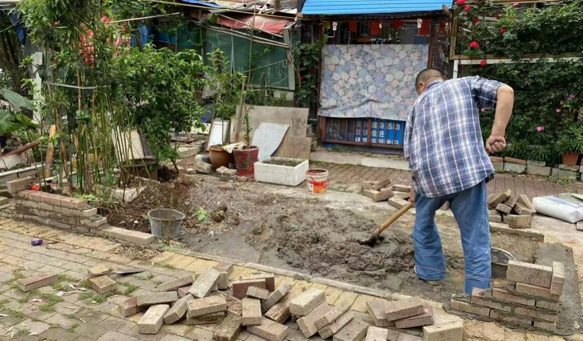 不到三天的时间,施工人员就带上工具、扛来水泥,对废弃砖石进行仔细地挑选和整理,然后分工合作,有人负责搅拌水泥,有人负责搬运砖石,先把花坛破损的地方清理干净,接着用砖石砌出花坛的大致形状,再把搅拌好的水泥仔细地涂抹在砖石之间,让它们牢固地结合在一起。就这样忙碌了半天,终于将花坛修好了,还特意为聂婆婆送上了精心准备的花籽和草籽。